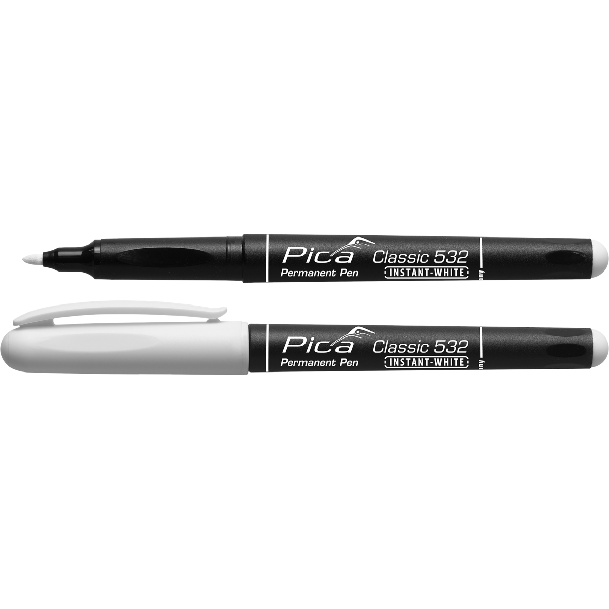 - Pica Instant-White Permanent Pen 532 – Marque instantanément, sans secouer, sans pomper, avec de l‘encre permanente blanche