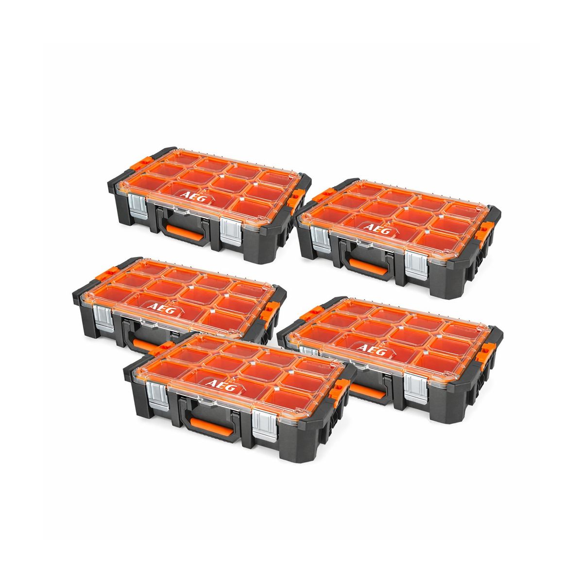 Lot de x5 organiseurs de rangement AEG QUICKSTACK (4932499699) avec 10 godets amovibles.