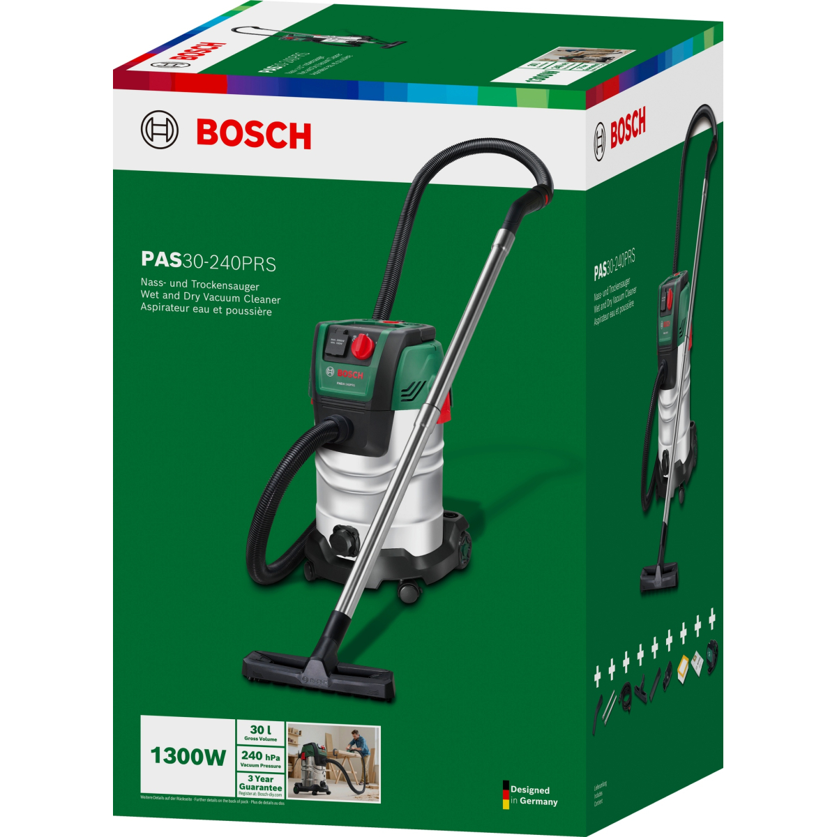 - L'aspirateur Bosch PAS30-240PRS est conçu pour ceux qui recherchent puissance et endurance lors du nettoyage. Grâce à sa forte puissance d'aspiration, il convient aussi bien aux poussières sèches qu'aux saletés humides, ce qui en fait une solution fiable pour la maison, l'atelier et le garage.