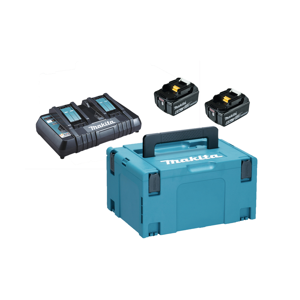 Makita Pack Énergie 18V Li-Ion 6.0Ah (2 batteries BL1860B + 1 chargeur double DC18RD) 198077-8 - Présentation: