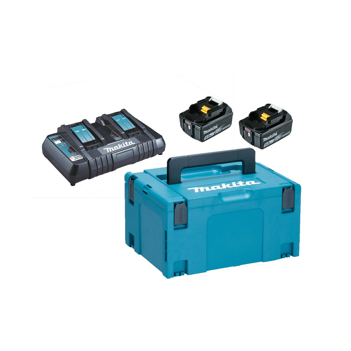 Makita Pack Énergie 18V Li-Ion 5.0Ah (2 batteries BL1850B + 1 chargeur double DC18RD) avec coffret MAK-PAC (197629-2)