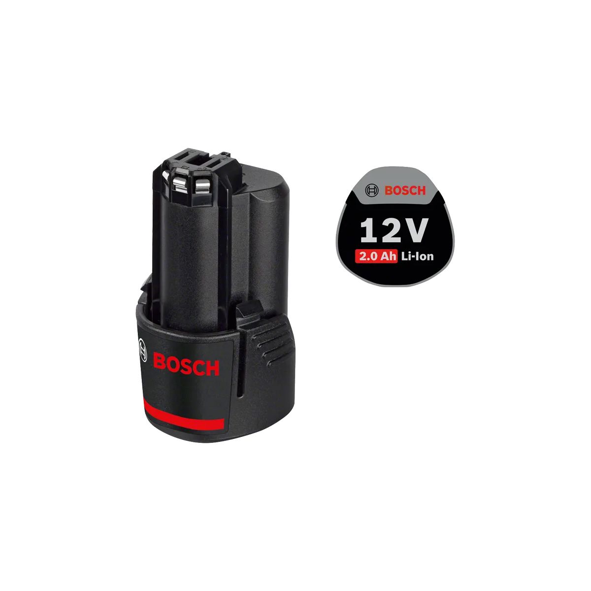 - La Bosch GBA 12V 2.0Ah est une batterie Lithium-Ion compacte et légère conçue pour l’ensemble du système Bosch Professional 12V.