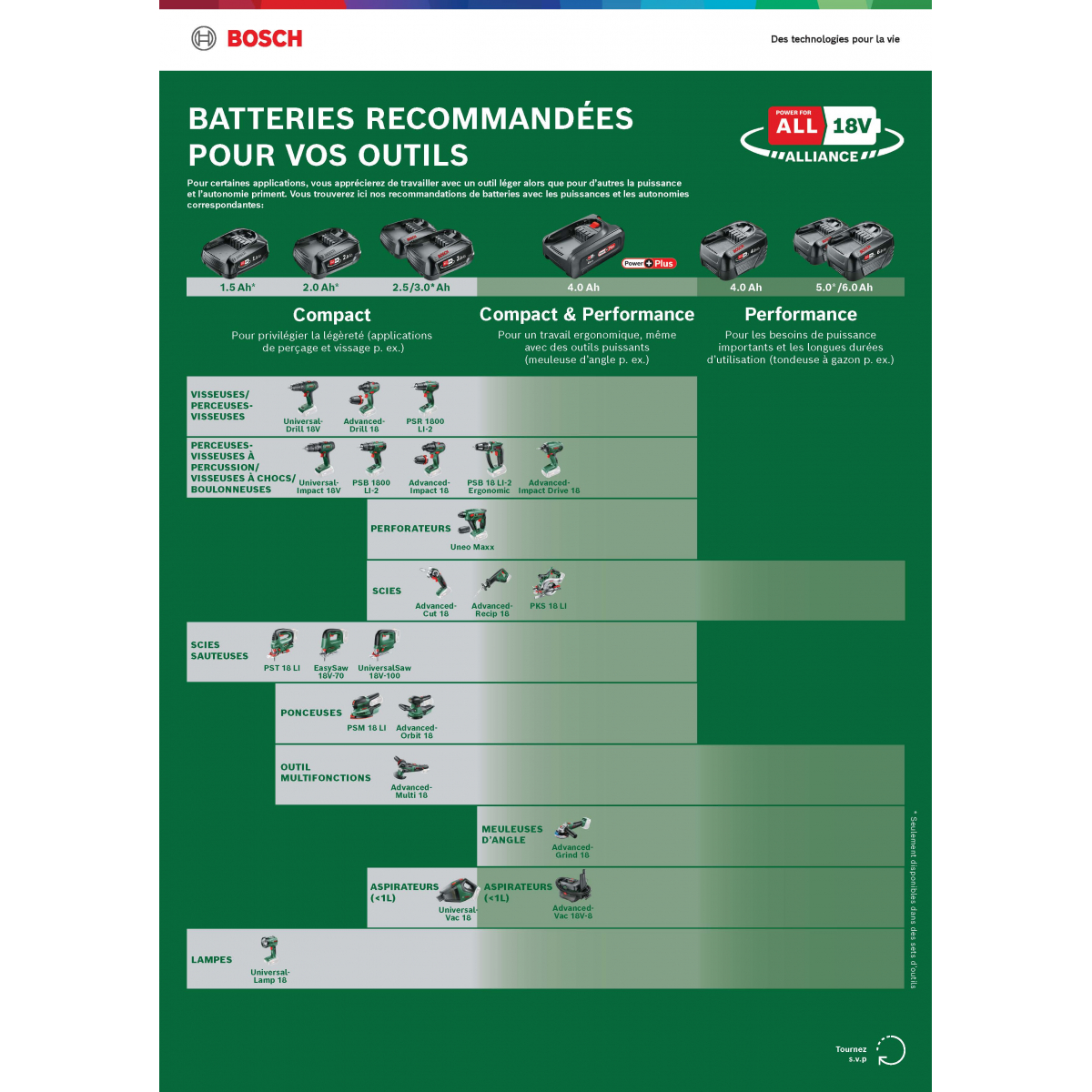 - Compatibilité de la batterie: 18V POWER FOR ALL ALLIANCE