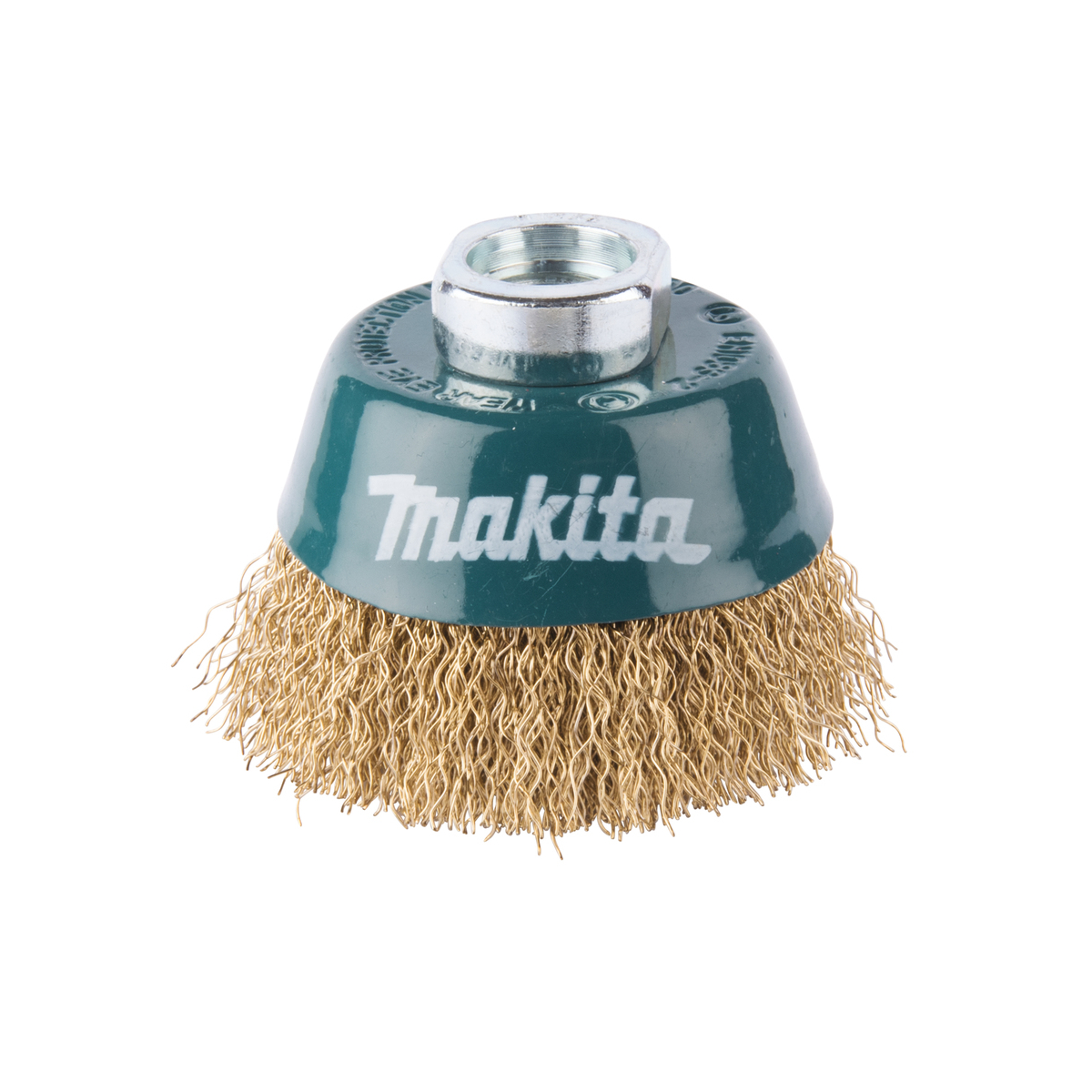 - Brosse boisseau métallique Makita D-39746 Ø 60 mm avec fil d’acier laitonné ondulé, à monter sur meuleuse angulaire M14