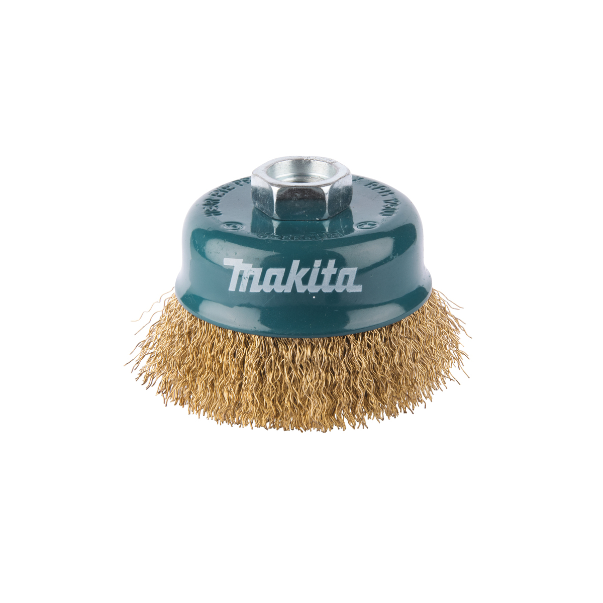 Brosse Makita à fils acier laitonnés et ondulés pour travaux de nettoyage tels que enlèvement de peinture, rouille, incrustations diverses et bavures.