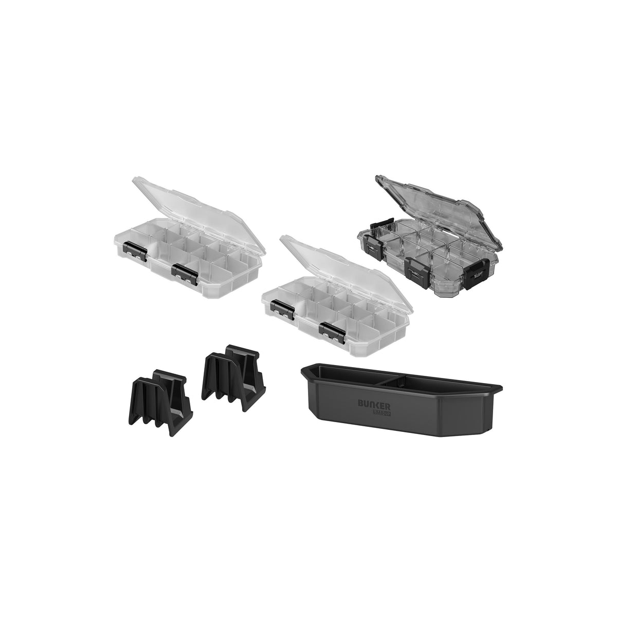 - Accessoires BUNKER Load-Up supplémentaires, notamment deux crochets latéraux, un bac de rangement, un organiseur étanche et deux organiseurs transparents.