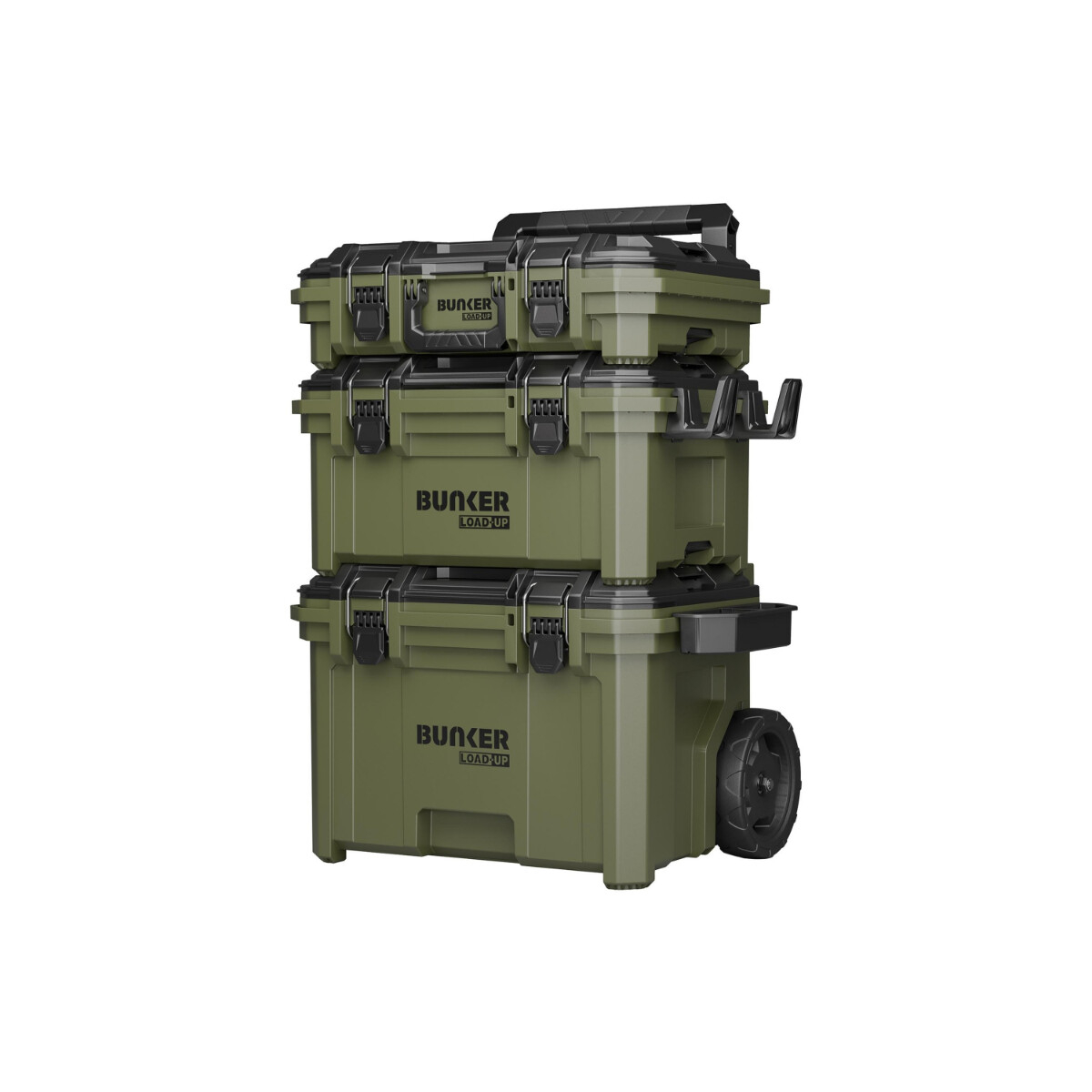 - Comprend une caisse à outils roulante BUNKER Load-Up de 340 mm, ainsi qu'une caisse à outils empilable de 230 mm et une autre de 100 mm.