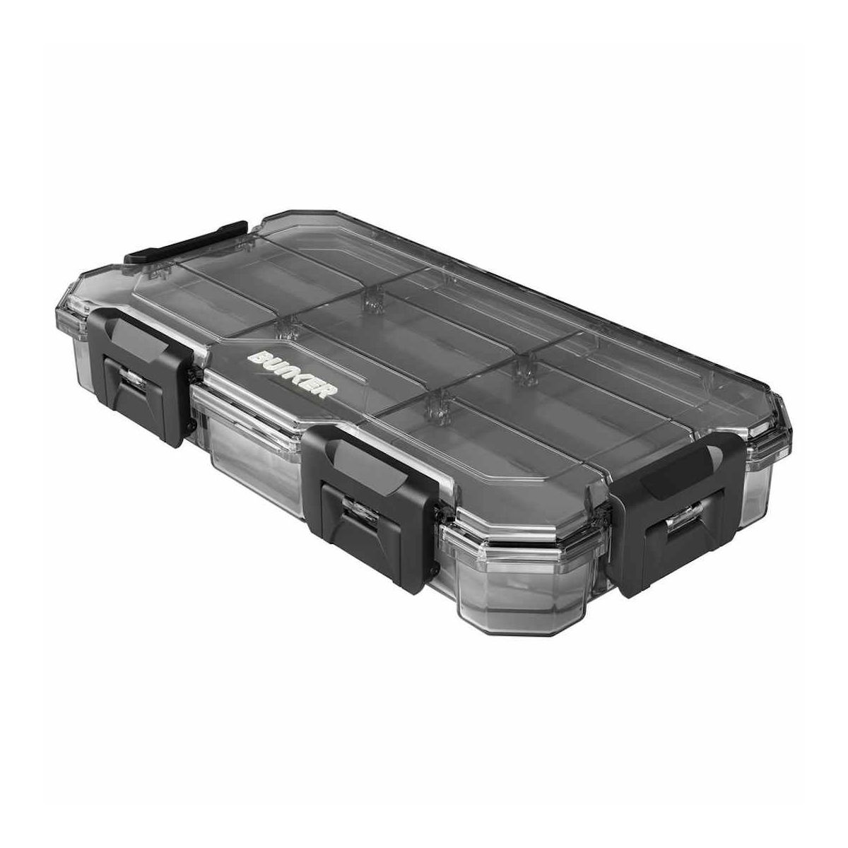 - Faisant partie du système de rangement empilable BUNKER Load-Up, cet organiseur offre une protection IP65 contre l'eau et la poussière, préservant ainsi son contenu des intempéries et des débris de chantier. Il comprend neuf compartiments avec séparateurs amovibles pour une organisation et un rangement modulables. Son couvercle transparent permet de visualiser facilement le contenu. Cet organiseur est conçu pour s'insérer dans les boîtes à outils et caisses empilables BUNKER Load-Up. Tous les produits de rangement BUNKER® sont garantis 12 mois, et leur garantie est étendue à 10 ans après enregistrement.