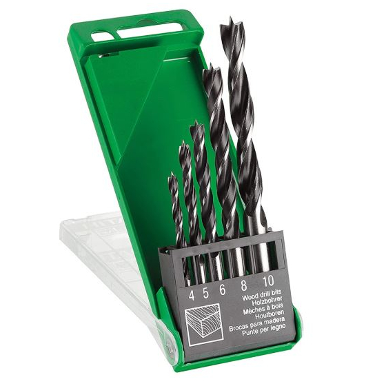 Coffret de 5 forets à bois avec tete à 3 pointes référence Hikoki 781981, comprend les ø4,5,6,8 & 10mm