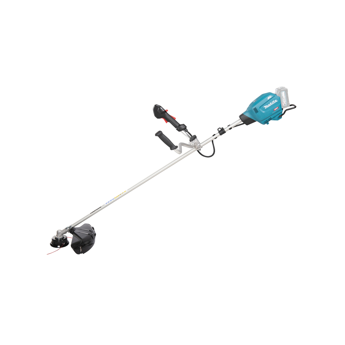 - L’UR013G est une débroussailleuse sans fil avec poignée de guidon. Le contrôle de la vitesse variable par levier permet à l’utilisateur de régler la vitesse souhaitée et de la maintenir. Le mode "High torque" offre un couple plus élevé pour les travaux de tonte lourds.