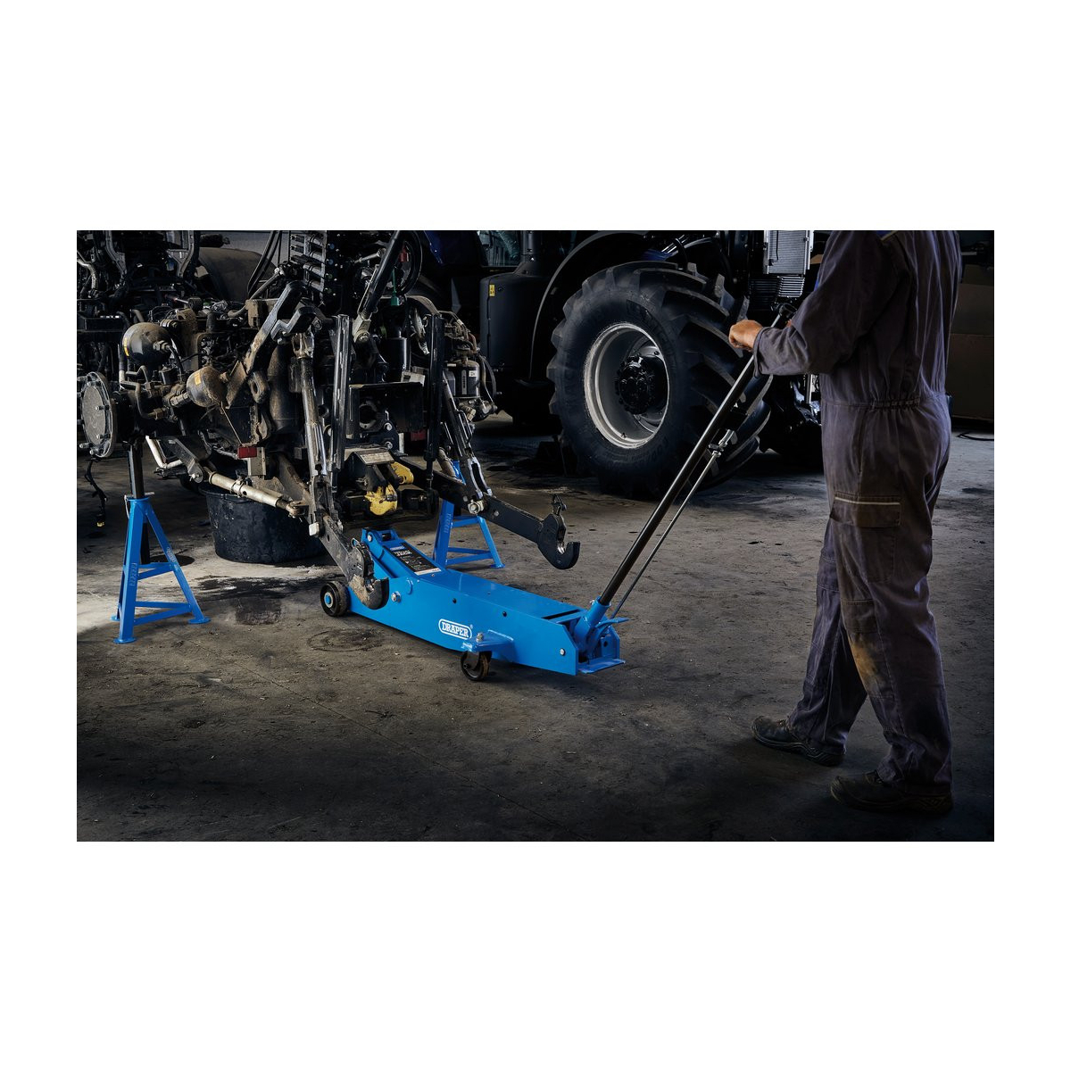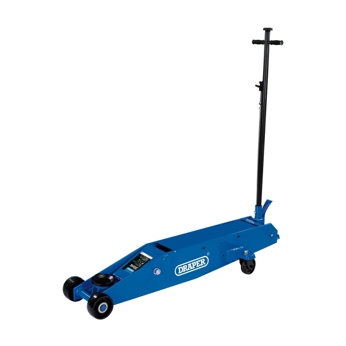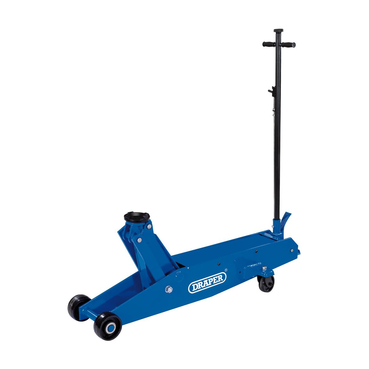Cric rouleur Draper 10 tonnes à châssis long, conçu pour les véhicules lourds et un usage professionnel intensif. Levage rapide, sécurité renforcée et excellente stabilité.