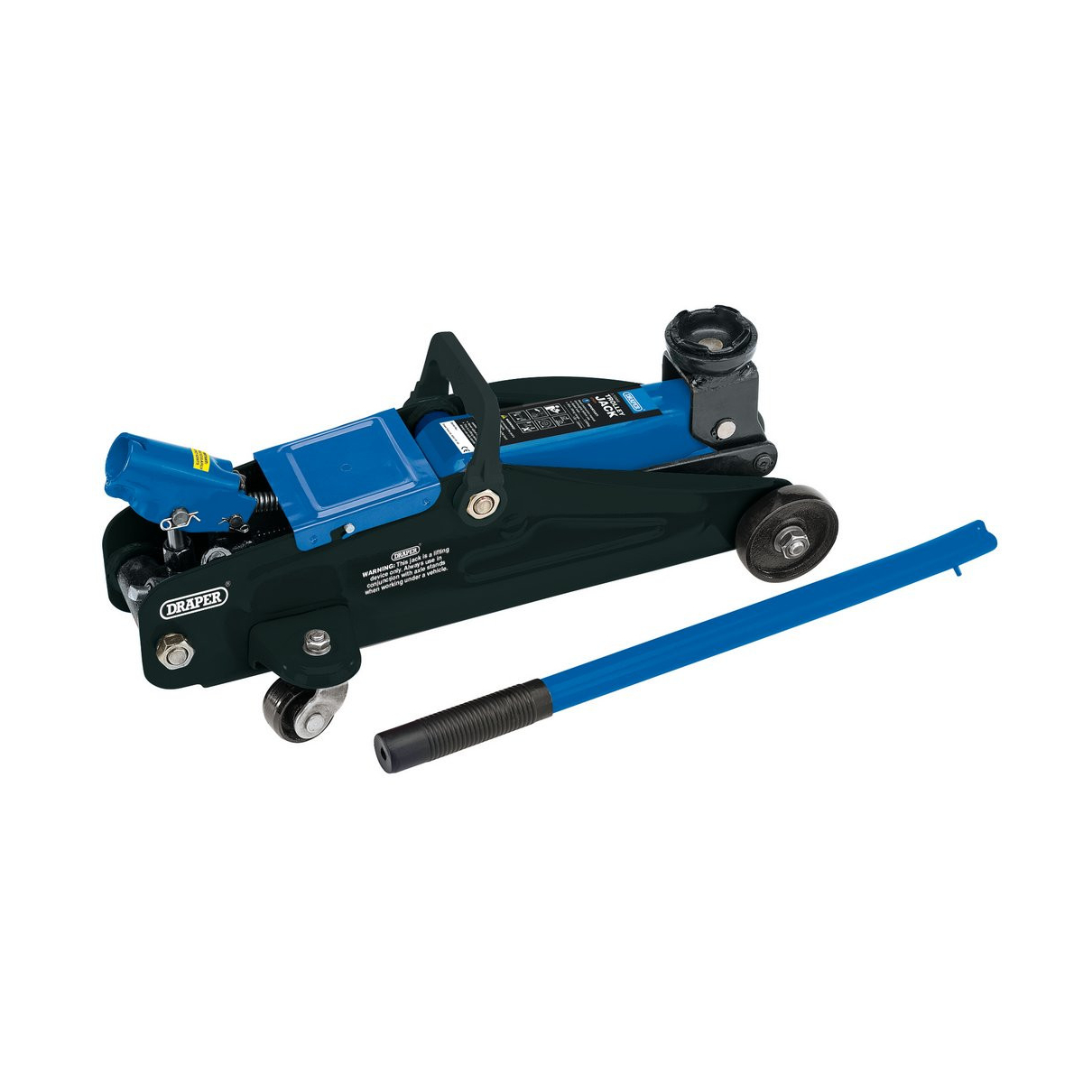 Cric rouleur Draper 2 tonnes avec mallette, compact et facile à transporter. Idéal pour dépannage et usage occasionnel, avec levage sécurisé et rangement pratique.