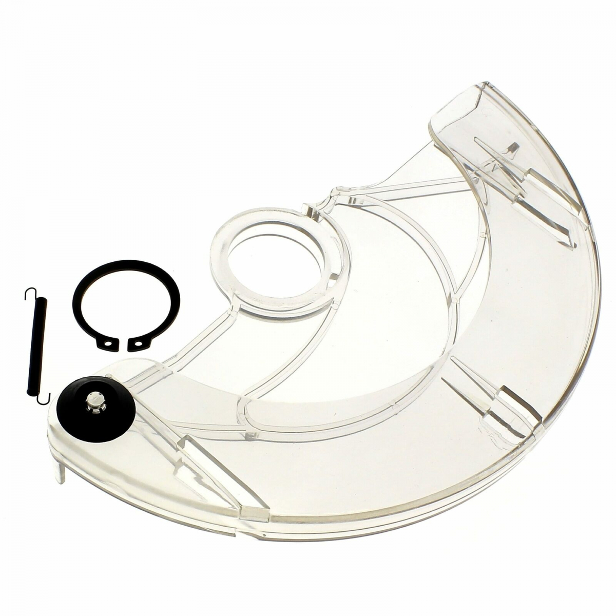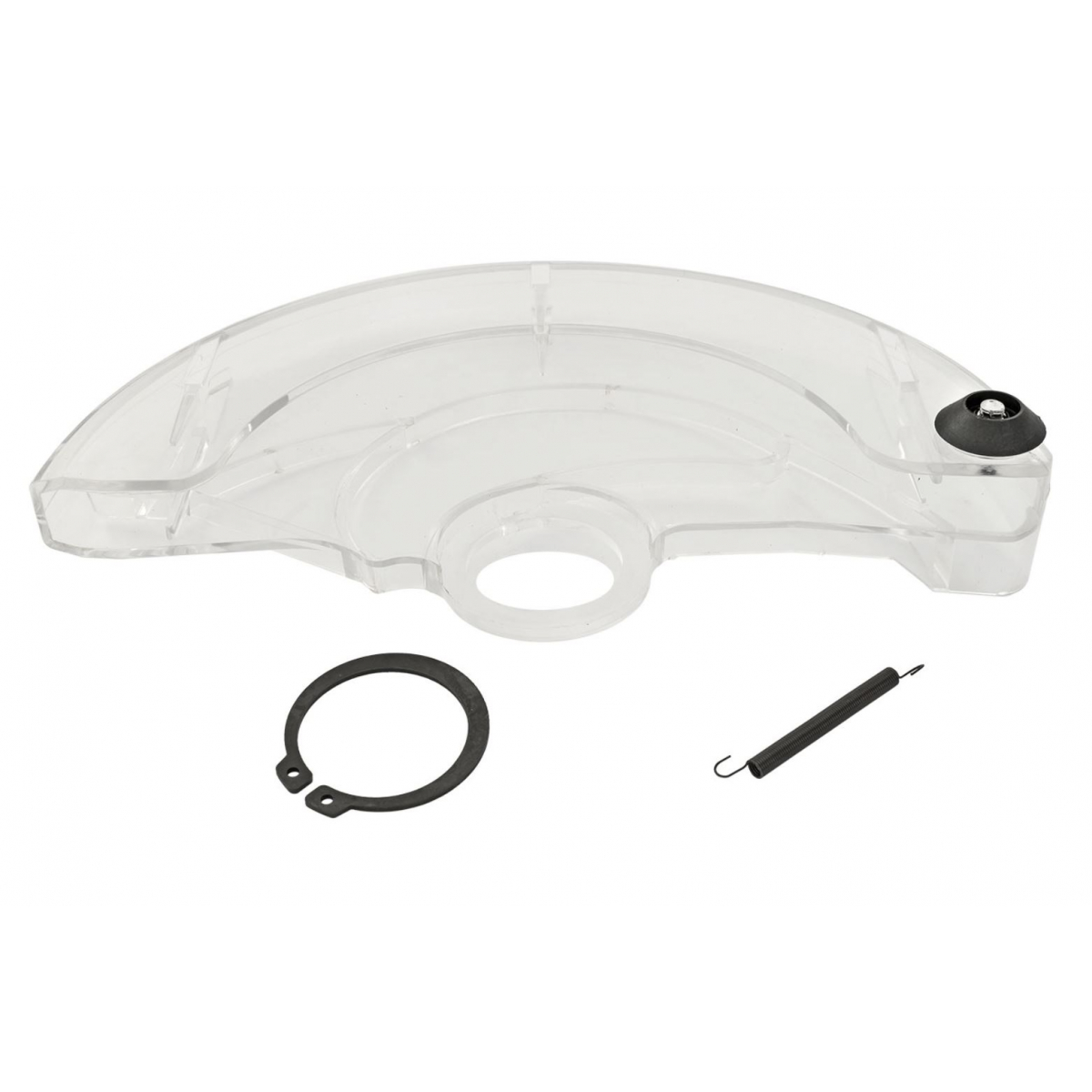 - Carter pendulaire en plastique transparent livrée avec le ressort et son circlips adaptable sur les scies Metabo KS216 Lasercut, KGS216, KS216M Lasercut, KHS216M...