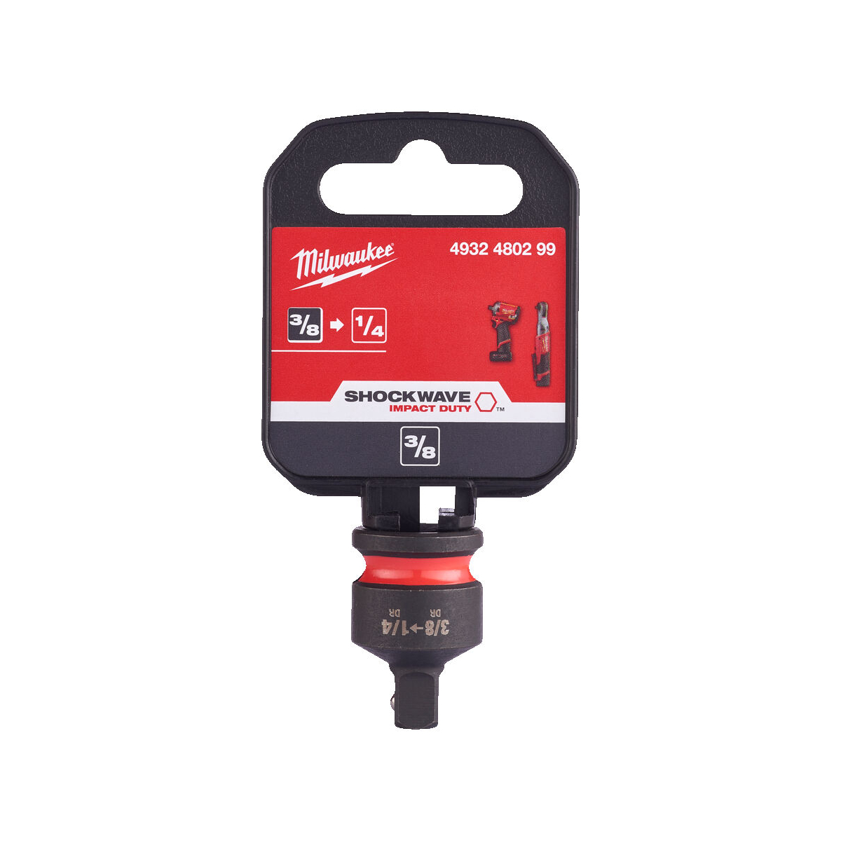 Adaptateur de douilles à chocs 3/8" - 1/4" de la gamme Milwaukee Shockwave.