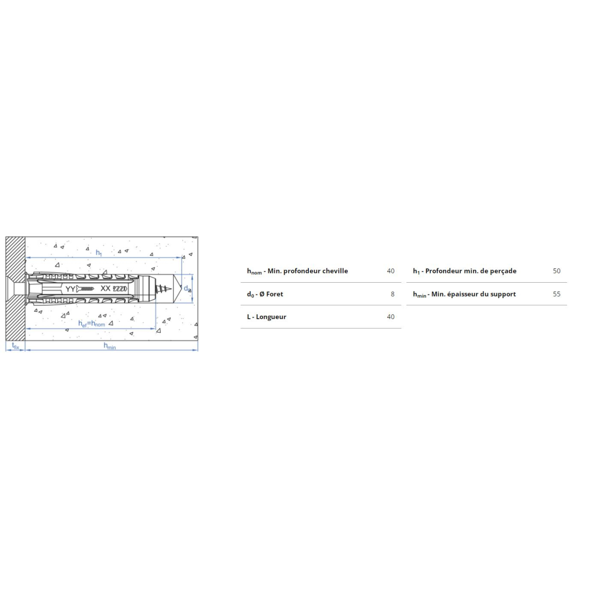 Index TN4S Lot de 500 chevilles nylon 8x40mm ø8 (TN4S08EP) - Caractéristiques Techniques: