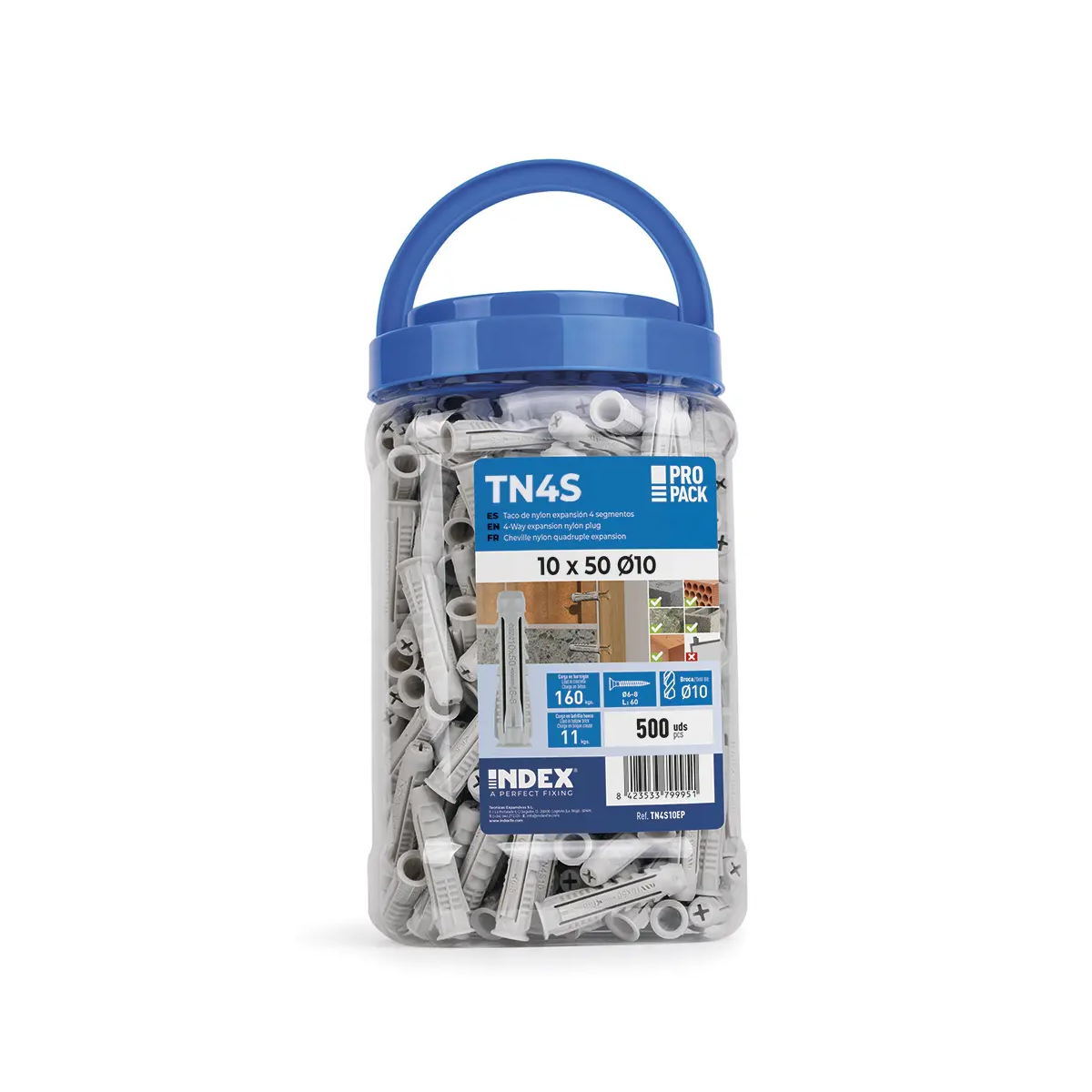 - Les chevilles en nylon TN4S sont parfaites pour obtenir des fixations résistantes aussi bien dans les matériaux pleins que creux. Leur expansion en 4 segments garantit d'excellentes performances dans tous les types de matériaux, du béton et de la pierre aux briques creuses et aux plaques de plâtre.