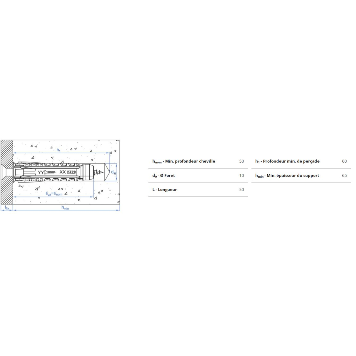Index TN4S Lot de 300 chevilles nylon 10x50mm ø10 (TN4S10EP) - Caractéristiques Techniques: