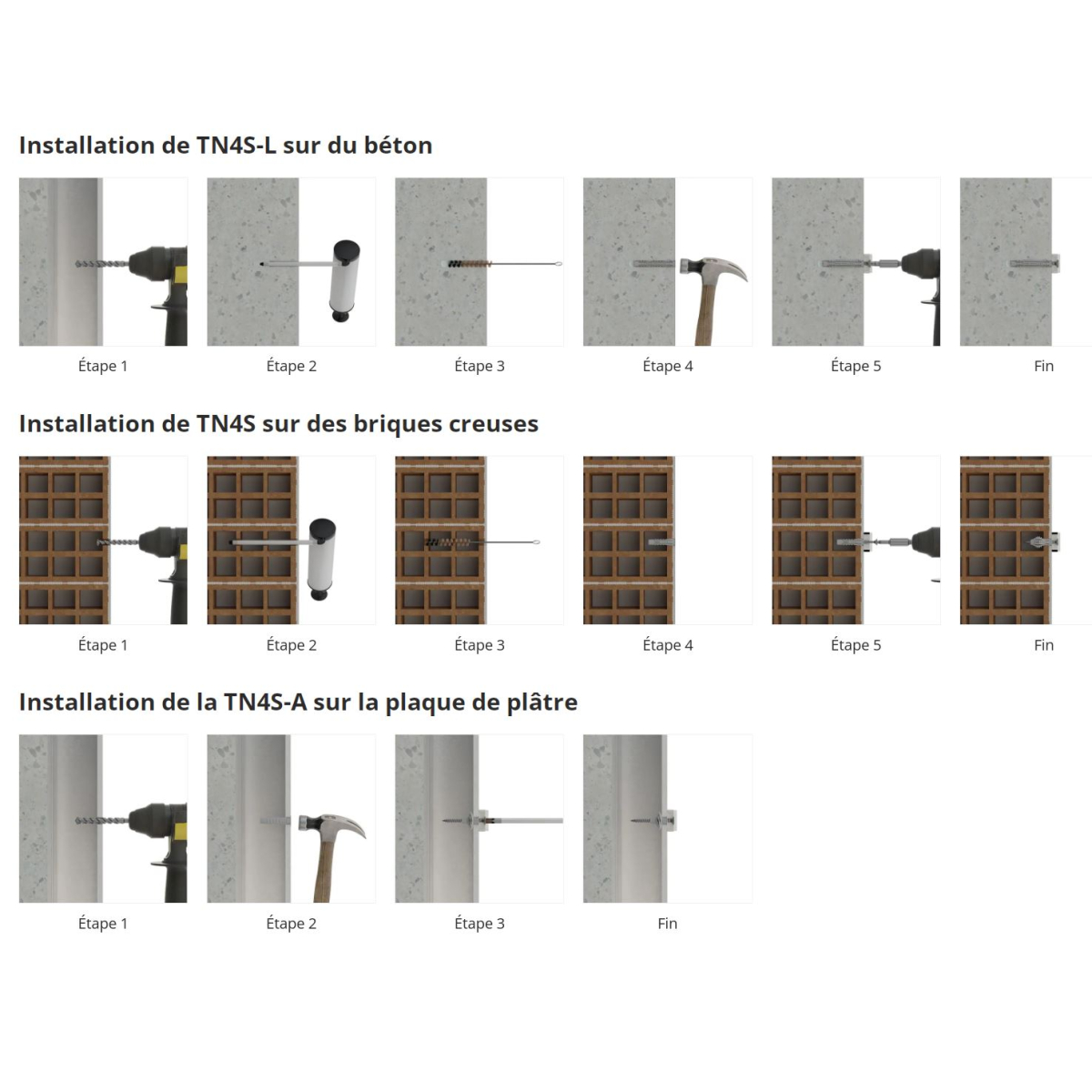 - Quadruple expansion : le TN4S s'expand et s'enroule à l'intérieur du matériau, garantissant des fixations solides et sûres