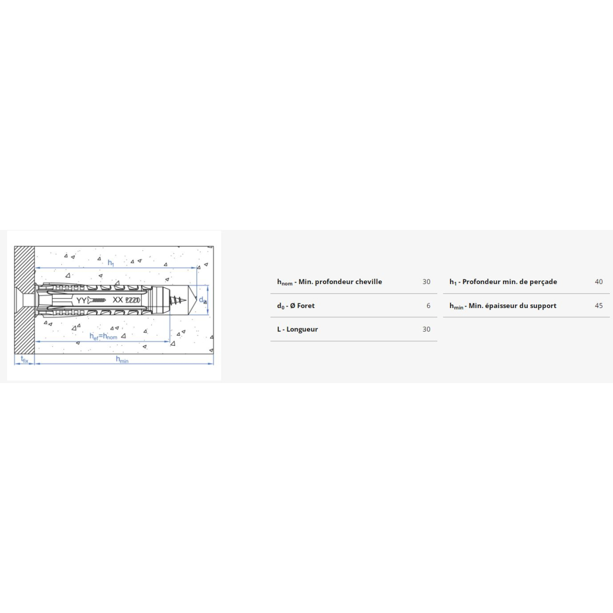 Index TN4S Lot de 100 chevilles nylon ø6 6x30mm (TN4S06) - Caractéristiques Techniques: