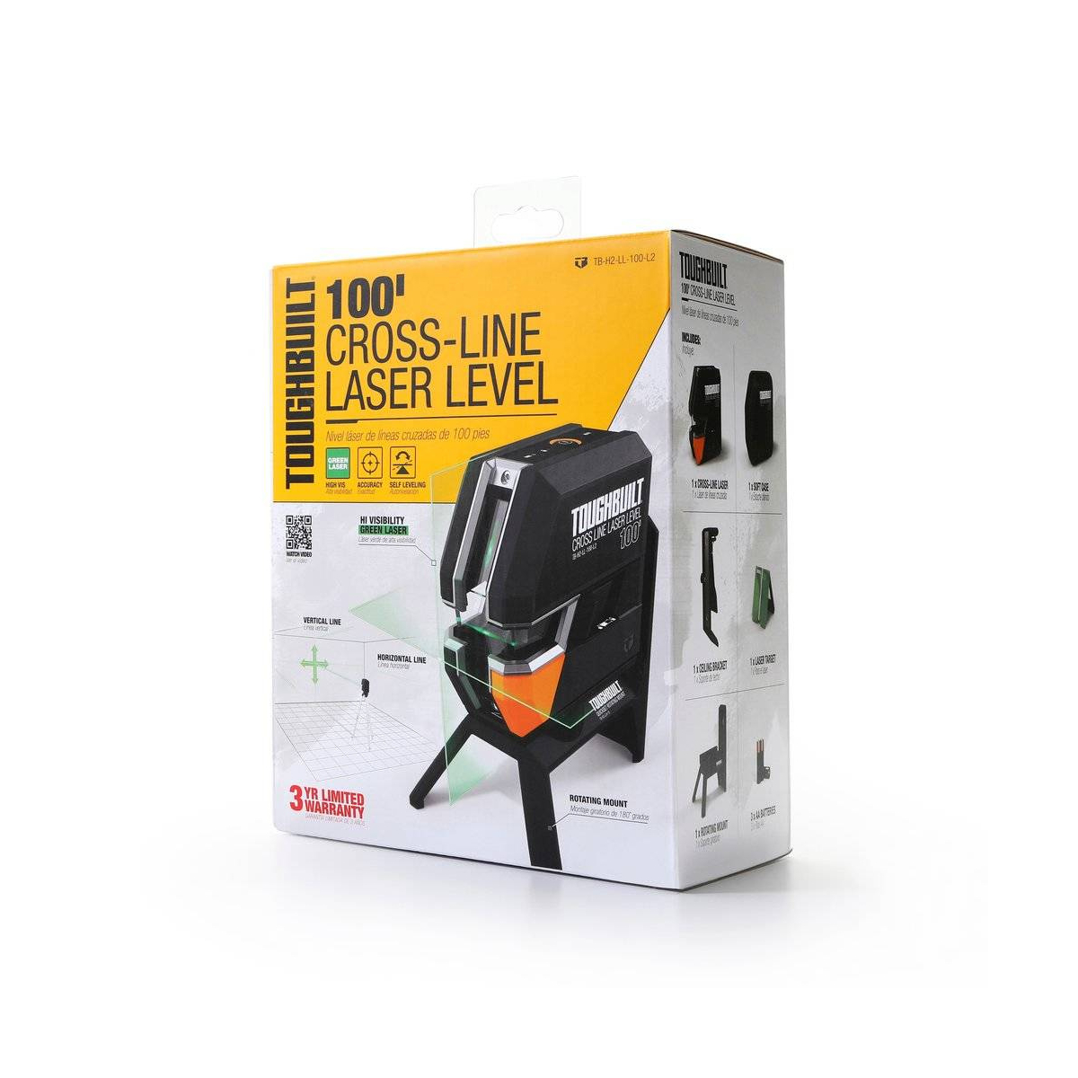 Toughbuilt Niveau laser en croix auto-nivelant à faisceau vert TB-H2-LL-M30-L2 - Présentation:
