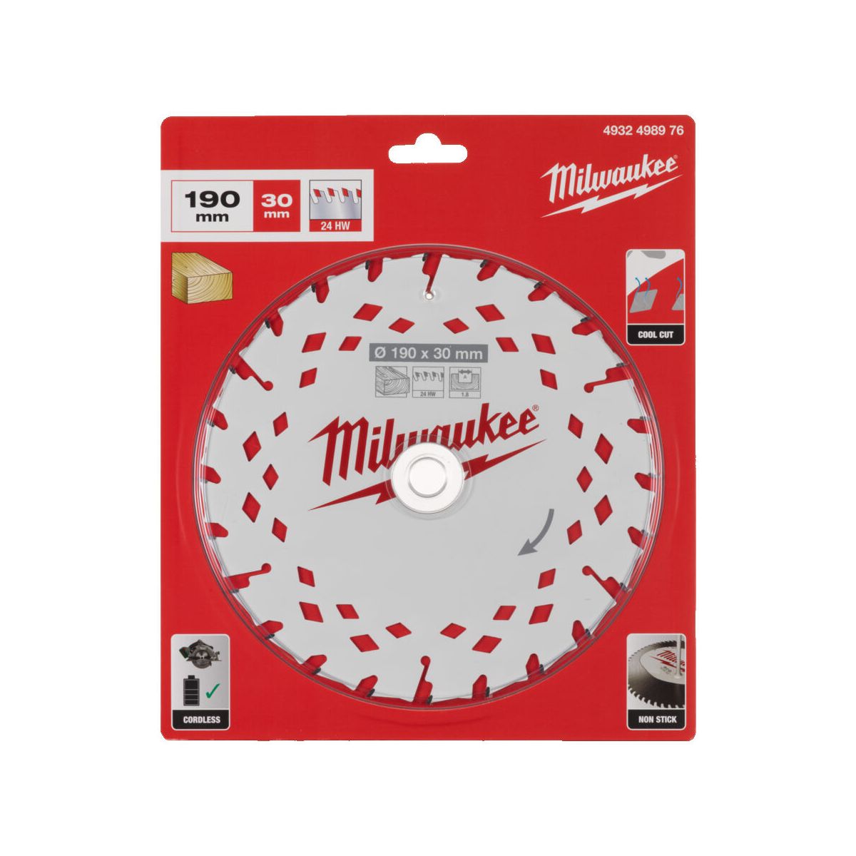Milwaukee Lame de scie circulaire Bois Ø190x30x24Dts ATB (4932498976) - Présentation: