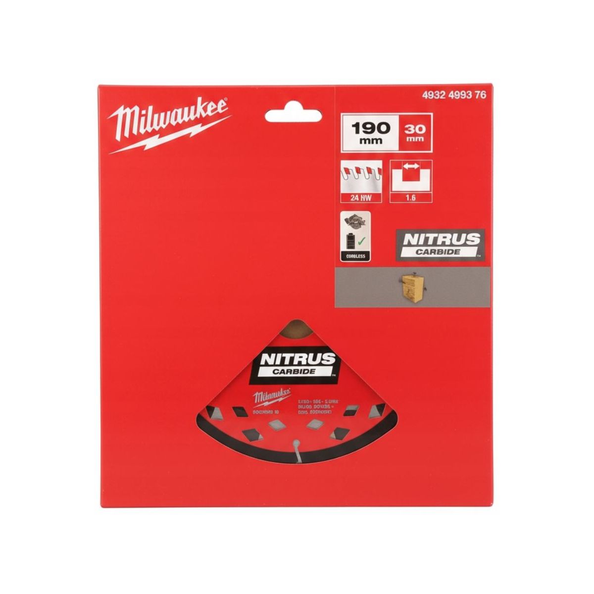 Milwaukee 4932499376 lame de scie circulaire Nitrus Carbide ø190 x 30 x 1,6 ATB 24