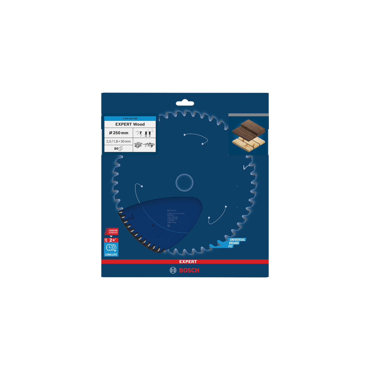 Bosch EXPERT for Wood Lame bois de scie circulaire 250 x 30 x 2,5 mm 80Dts (2608642500)