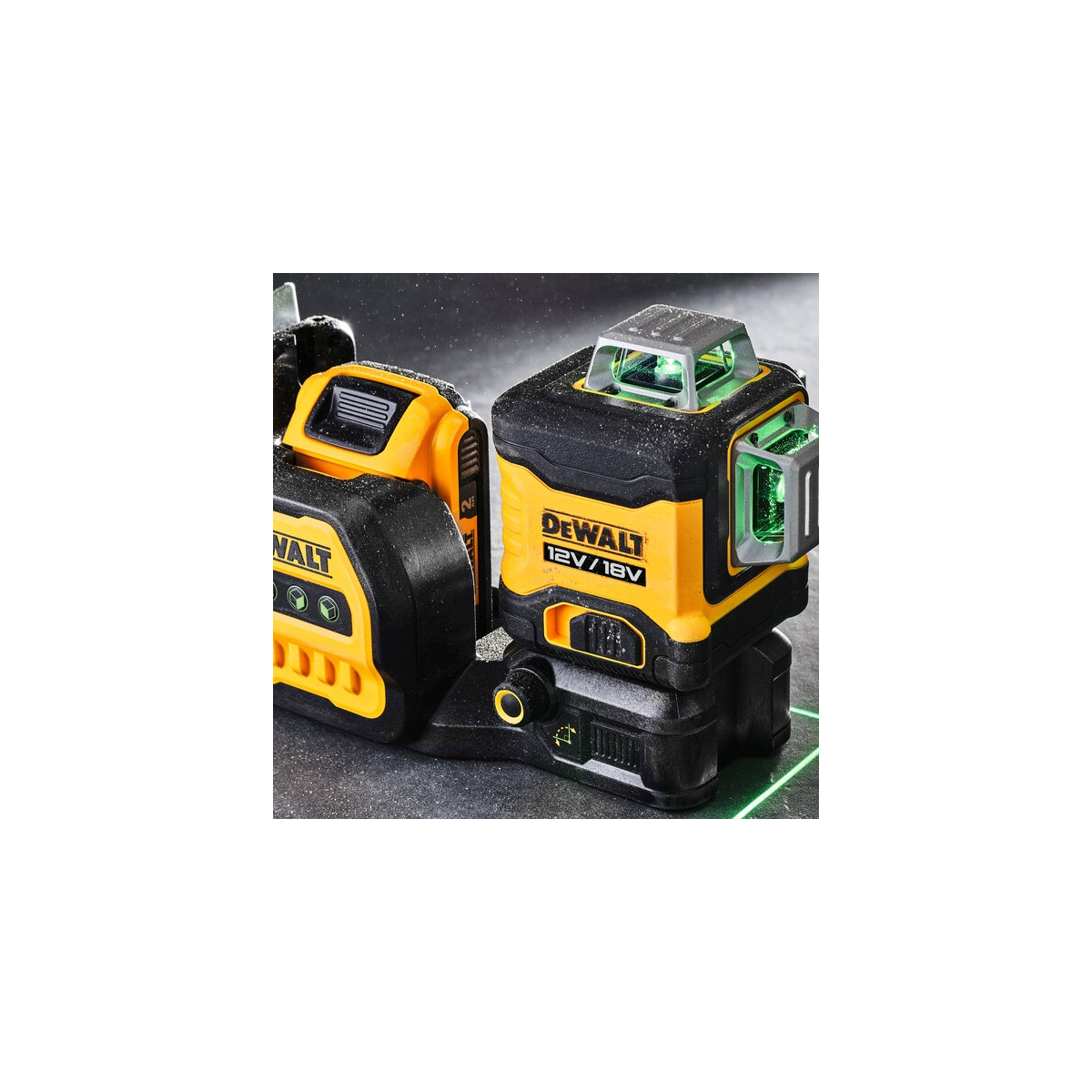 Le DCE089D1G18 est le 1er laser multi-lignes 3 x 360° compatible avec les batteries DEWALT XR 12V et XR 18V.