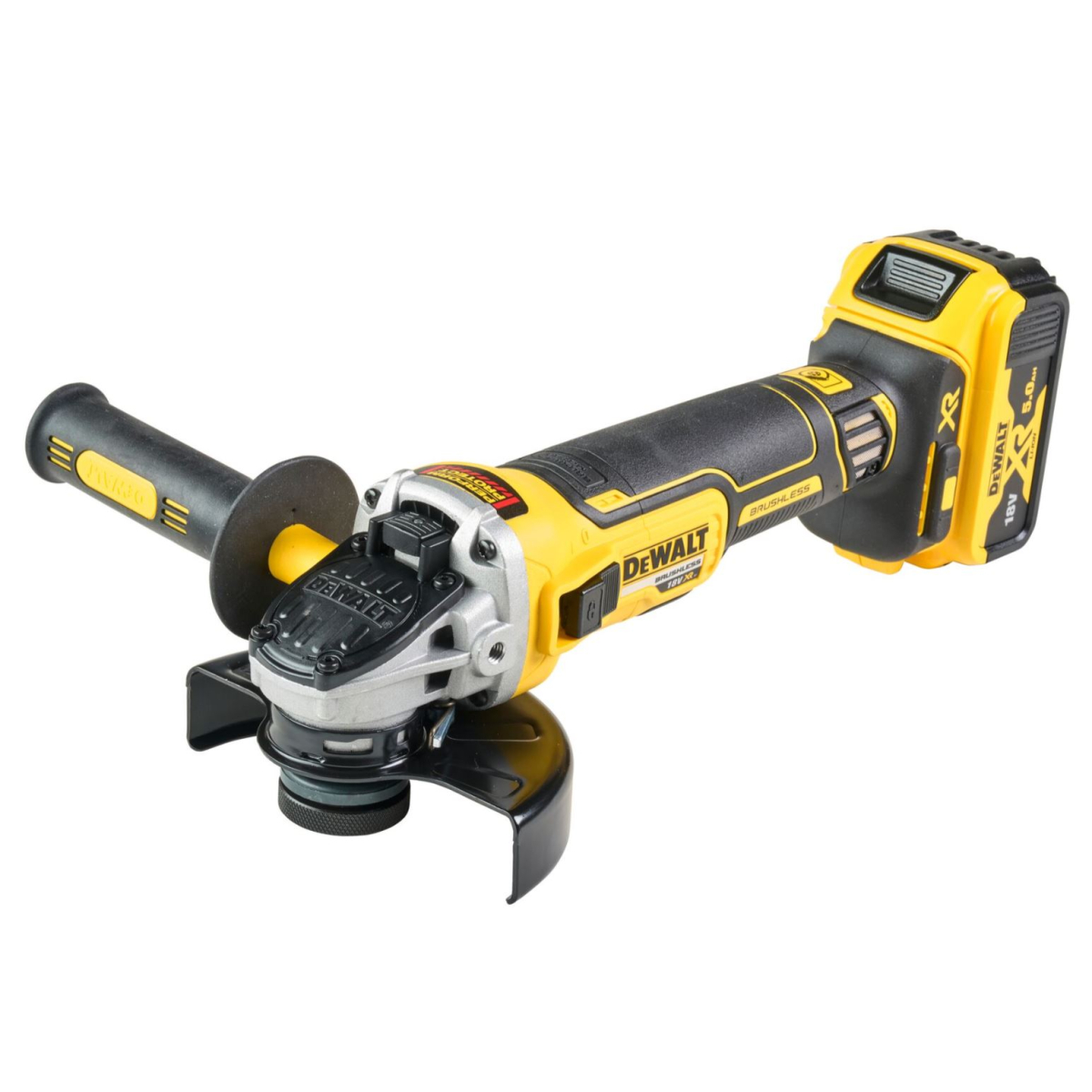 La meuleuse sans fil DeWalt 18V DCG405P2-QW possède un moteur Brushless sans charbons, version vendue avec batteries, chargeur et coffret de transport.