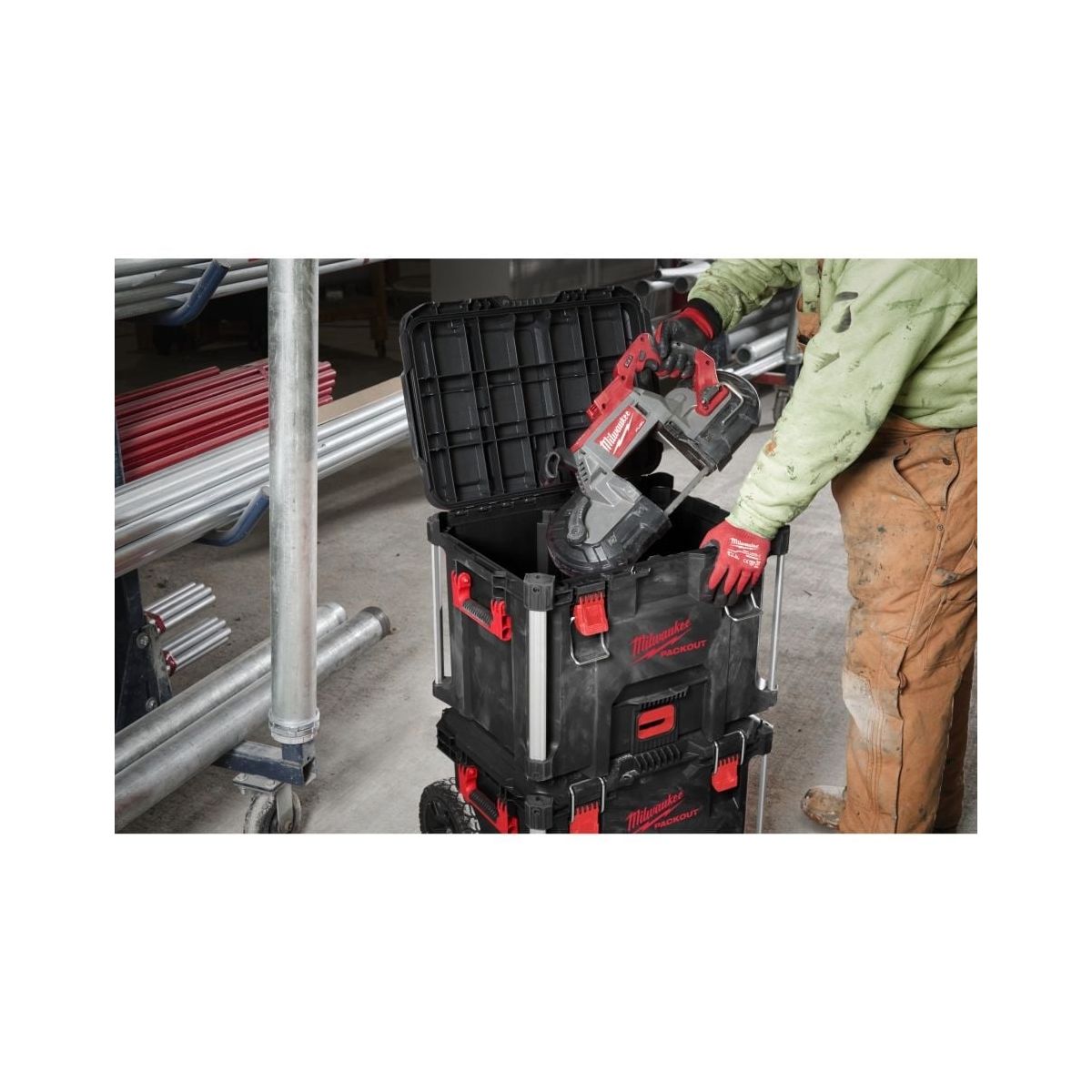 Grande boite à outils XL avec poignée supérieur renforcée en métal de transport, fait partie du système de stockage modulaire Milwaukee PACKOUT.