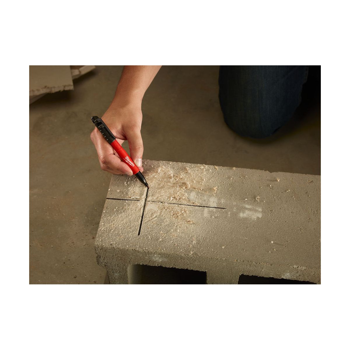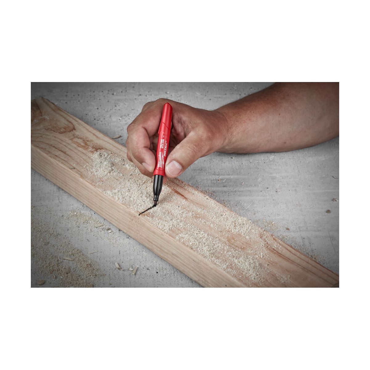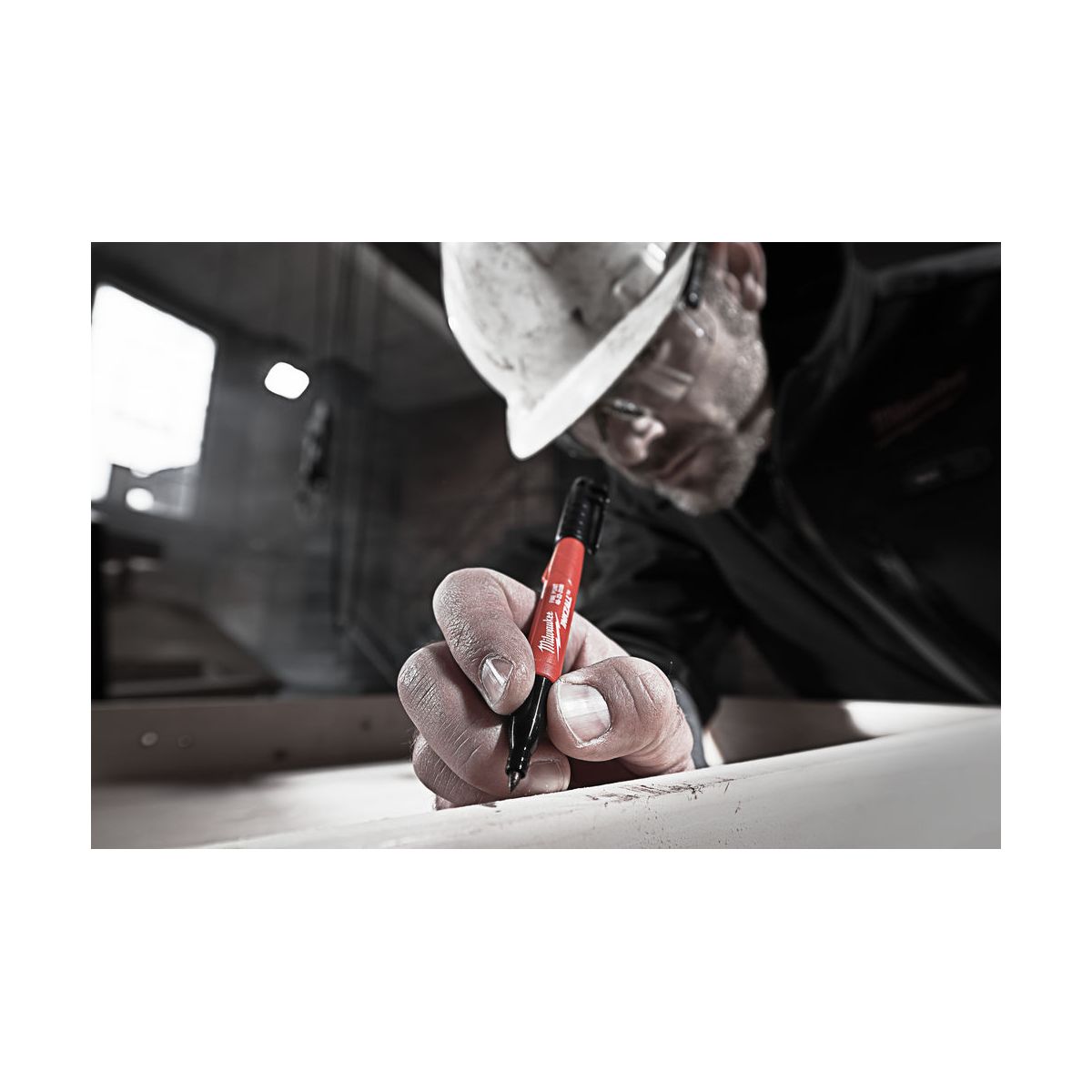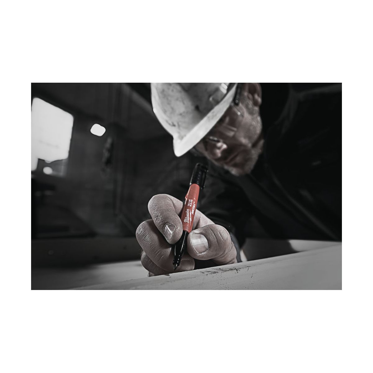 Le marqueur à pointe fine noire Milwaukee Inkzall vous permet d'écrire sur des surfaces rugueuses, huileuses, humides ou poussiéreuses.