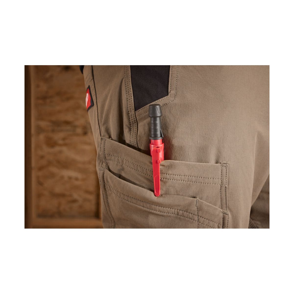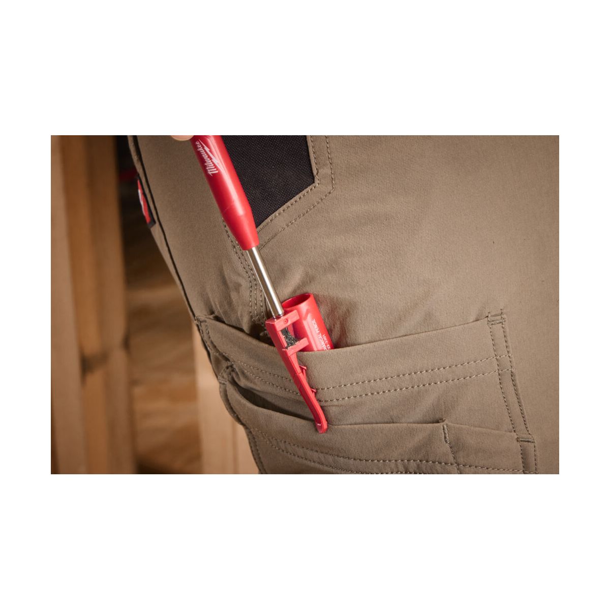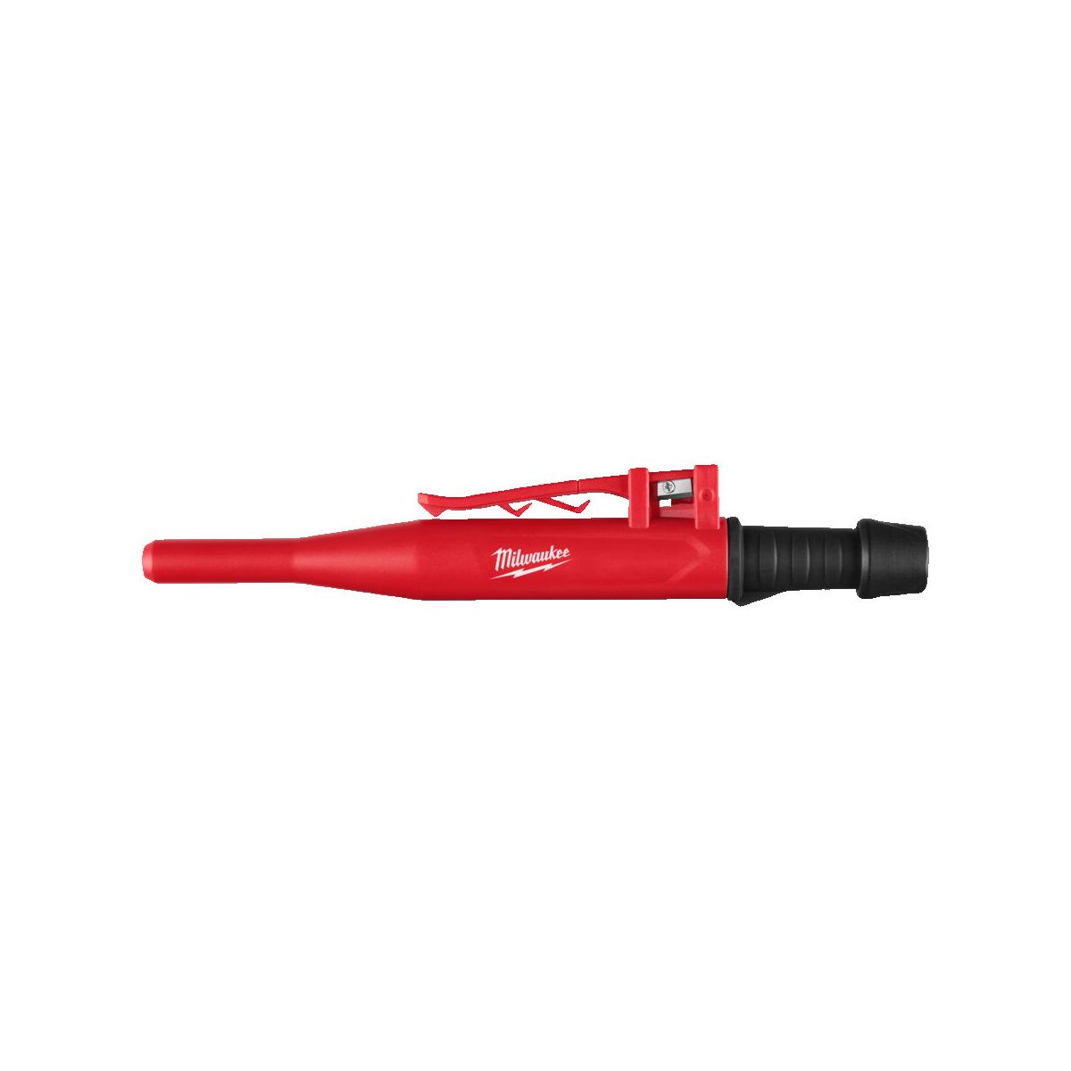 Crayon de chantier à mines INKZALL (4932501156) de marque Milwaukee avec affûteur inclus dans le fourreau.