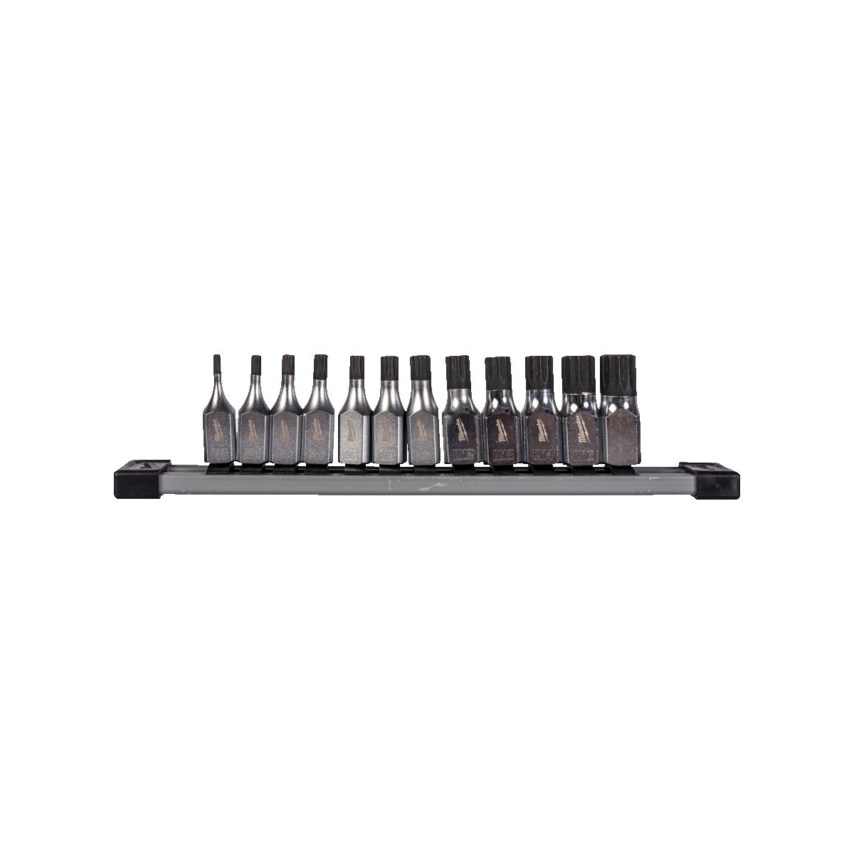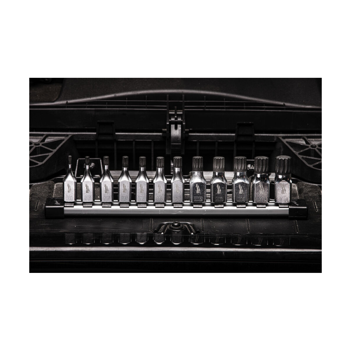 Set de 12 douilles embouts triple professionnelles avec support de marque Milwaukee pour cliquet 3/8".