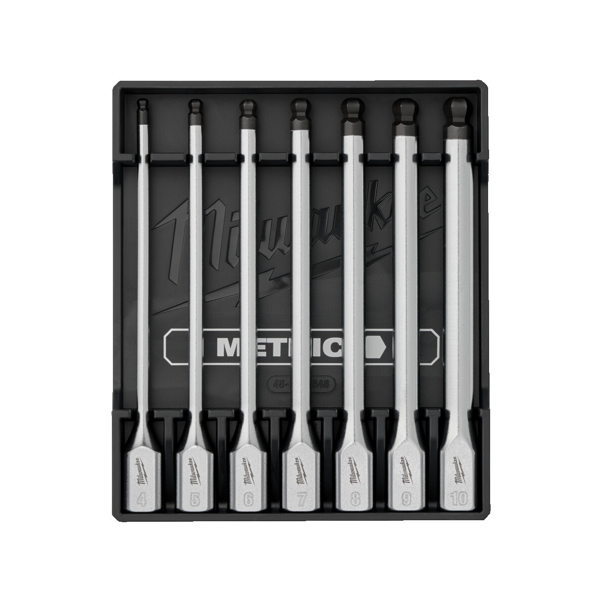 Set de 7 douilles embouts Hexagonaux sphérique longs professionnelles avec support de marque Milwaukee pour cliquet 3/8".