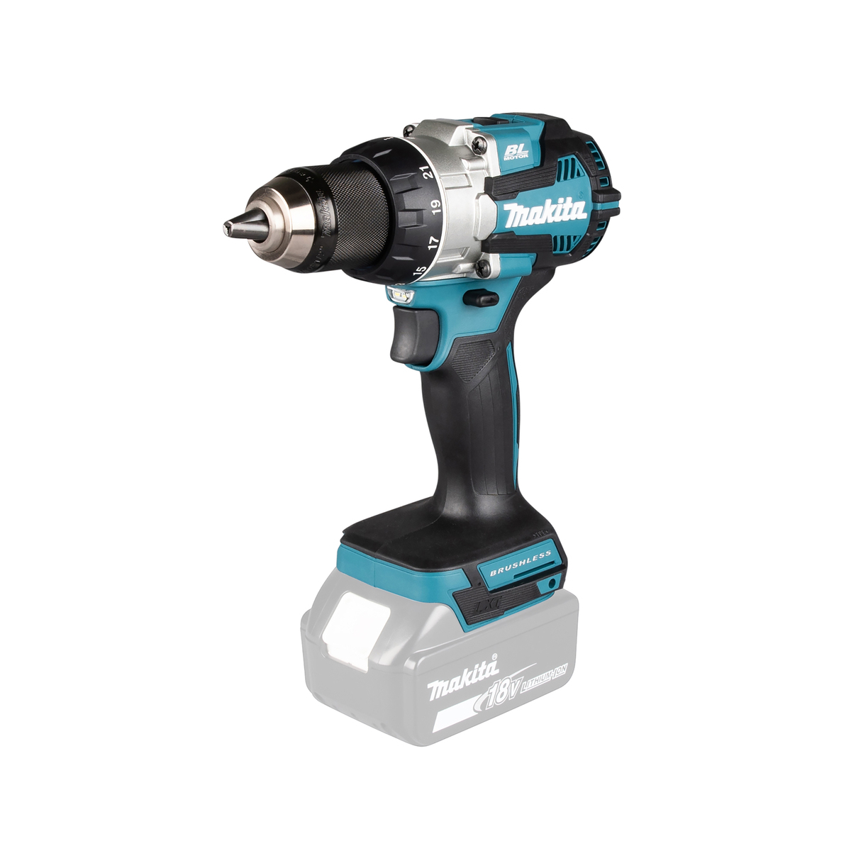 - Perceuse visseuse DDF489 : moteur Brushless, couple maximal de 110 Nm, vitesse à vide jusqu’à 1800 tr/min. Son mandrin 1,5–13 mm et son Ø bois max de 38 mm (51 mm avec Forstner) permettent un perçage précis et polyvalent.