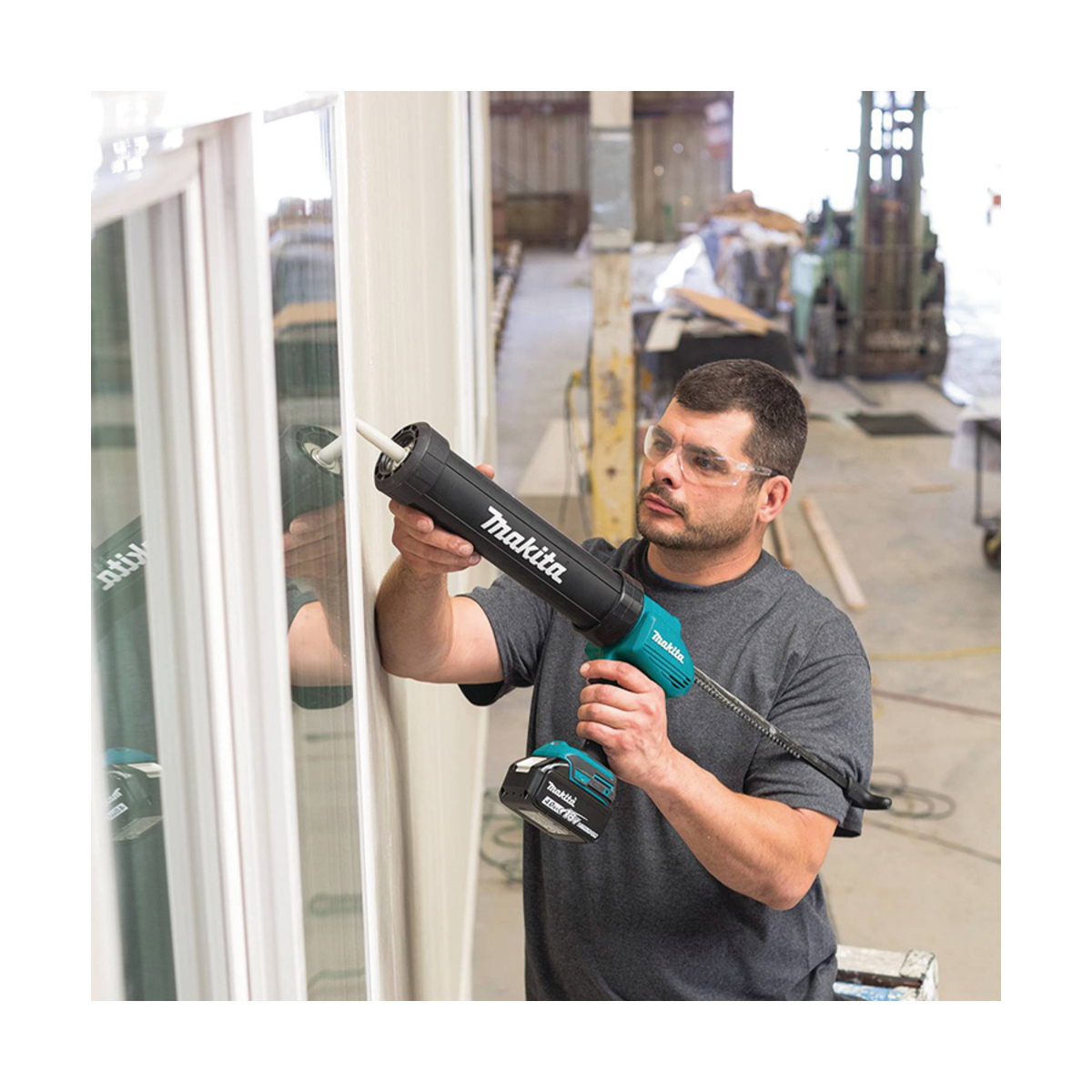 Pistolet à mastic sans fil 18V Makita, livrée sans batterie et sans chargeur.