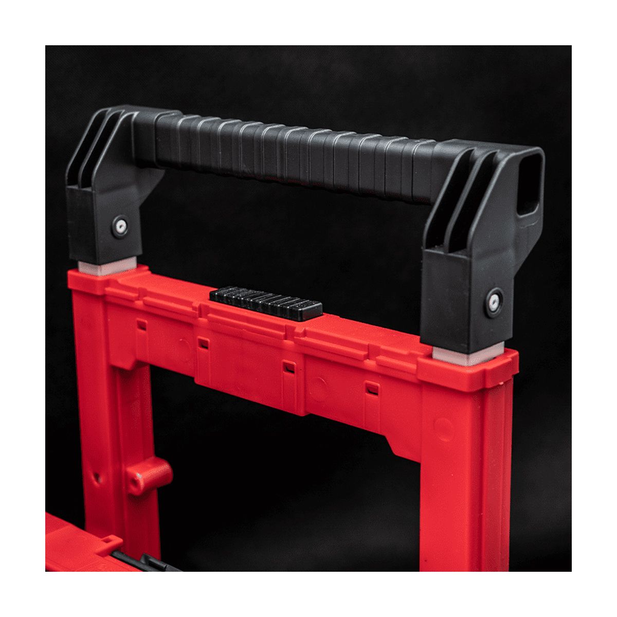 - La capacité de charge augmentée à 100 kg et la capacité de 52 litres permettent un transport confortable d’outils volumineux et lourds. Le nouveau modèle Cart se distingue également par une poignée télescopique solide avec une fonction de démontage pour faciliter le transport.
