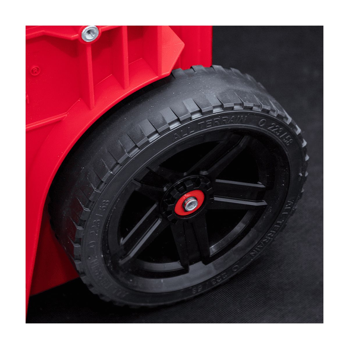 - Des roues beaucoup plus grandes (22,3 cm de diamètre) recouvertes d’une épaisse couche de caoutchouc assurent une traction excellente et silencieuse même dans des conditions de terrain très difficiles.