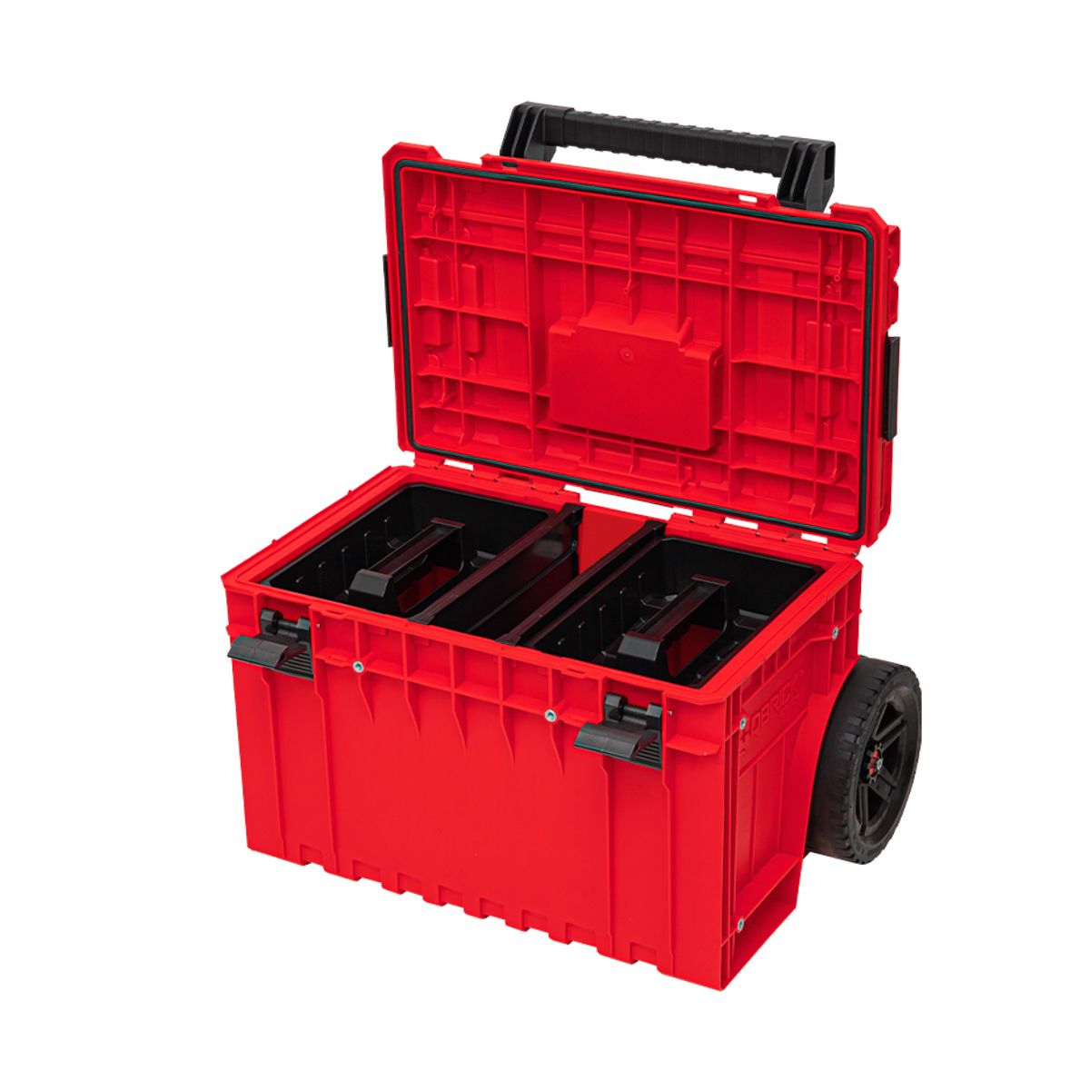 - QS ONE Cart RED Ultra HD est une boîte à outils mobile de grande capacité équipée de grandes roues montées sur un axe métallique. Il est équipé d’un manche télescopique en aluminium anodisé. Pour une meilleure organisation de l’intérieur, le coffret est équipé de deux plateaux et de deux compartiments.