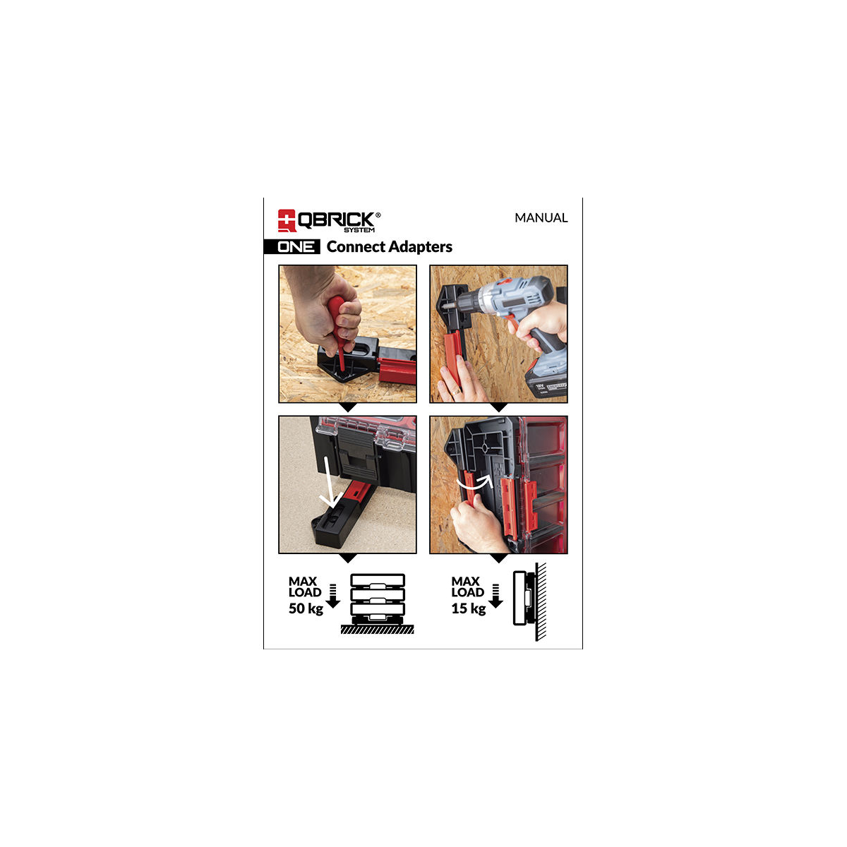- Les supports Qbrick Z257004PG001 sont conçus pour le montage des organiseurs QS ONE XL et 2XL sur les murs, les portes des fourgons, dans l'atelier, le garage ou même sur d'autres boîtes. Ils permettent également de fixer tous les boîtiers de la série ONE au sol. Cela crée un certain nombre de nouvelles possibilités pour stocker et transporter des valises plus grandes du système Qbrick ONE.