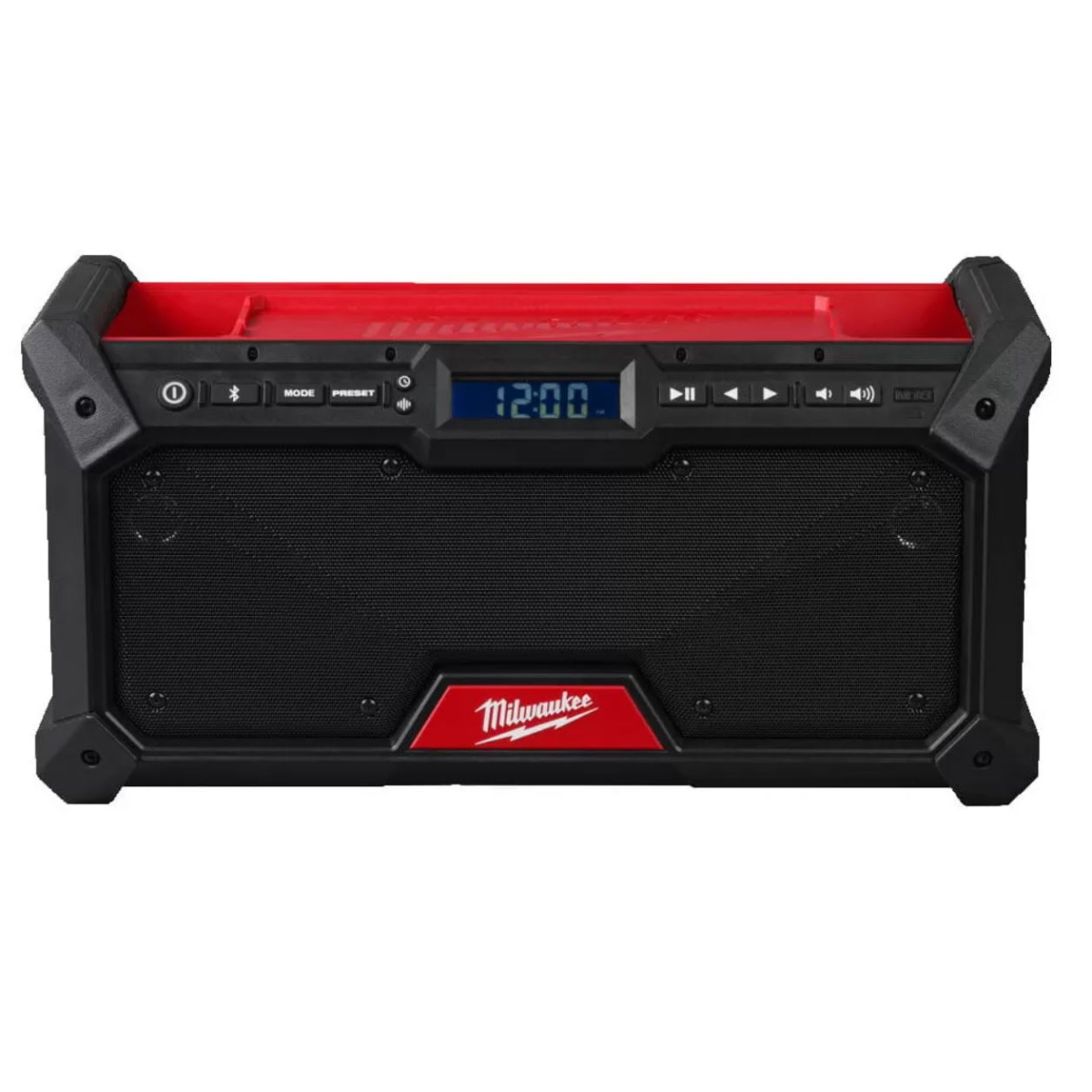 - Alimentée par les batteries MILWAUKEE® M18™ ou par une prise secteur 220V, cette radio garantit jusqu'à 12 heures d'autonomie avec une batterie M18™ REDLITHIUM™ 5.0 Ah, offrant ainsi une excellente autonomie pour accompagner les utilisateurs tout au long de leur journée de travail.