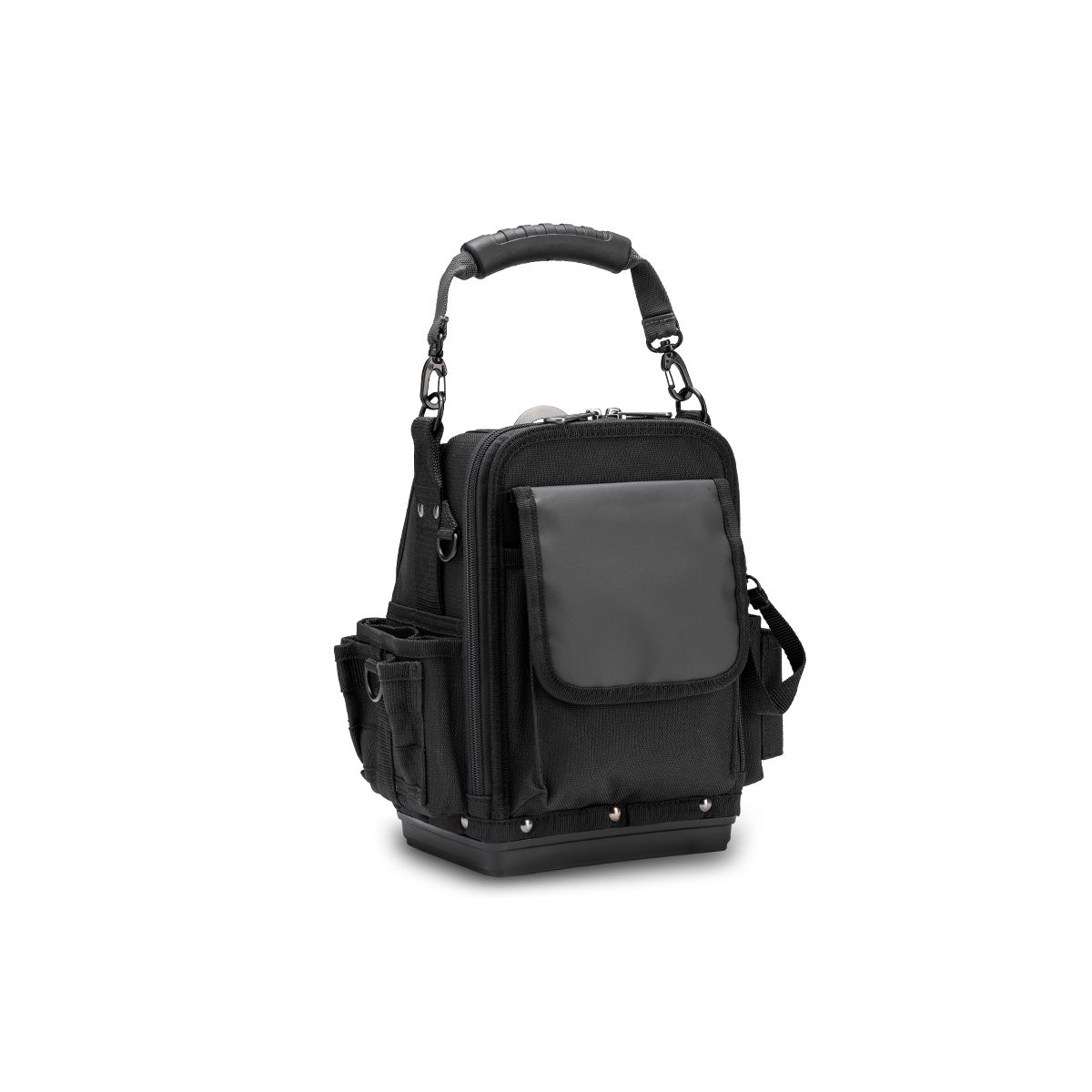 - Le sac à outils hybride SB-LD BLACKOUT, entièrement noir, est doté d'un compartiment dédié aux outils et d'un autre dédié aux appareils de test. Il est également équipé d'une plaque en acier sur le dessus permettant la fixation d'objets à l'aide d'un aimant. Le compartiment à outils ouvert offre un accès rapide à vos outils à main. Le compartiment pour appareils de test, fermé, est conçu pour protéger ces derniers des intempéries et des autres outils. Il intègre également notre technologie V-SWAP™ (fournie avec le panneau arrière V-SWAP) qui permet de ranger multimètres, sondes intelligentes ou outils à main en remplaçant simplement le panneau par d'autres panneaux (vendus séparément).