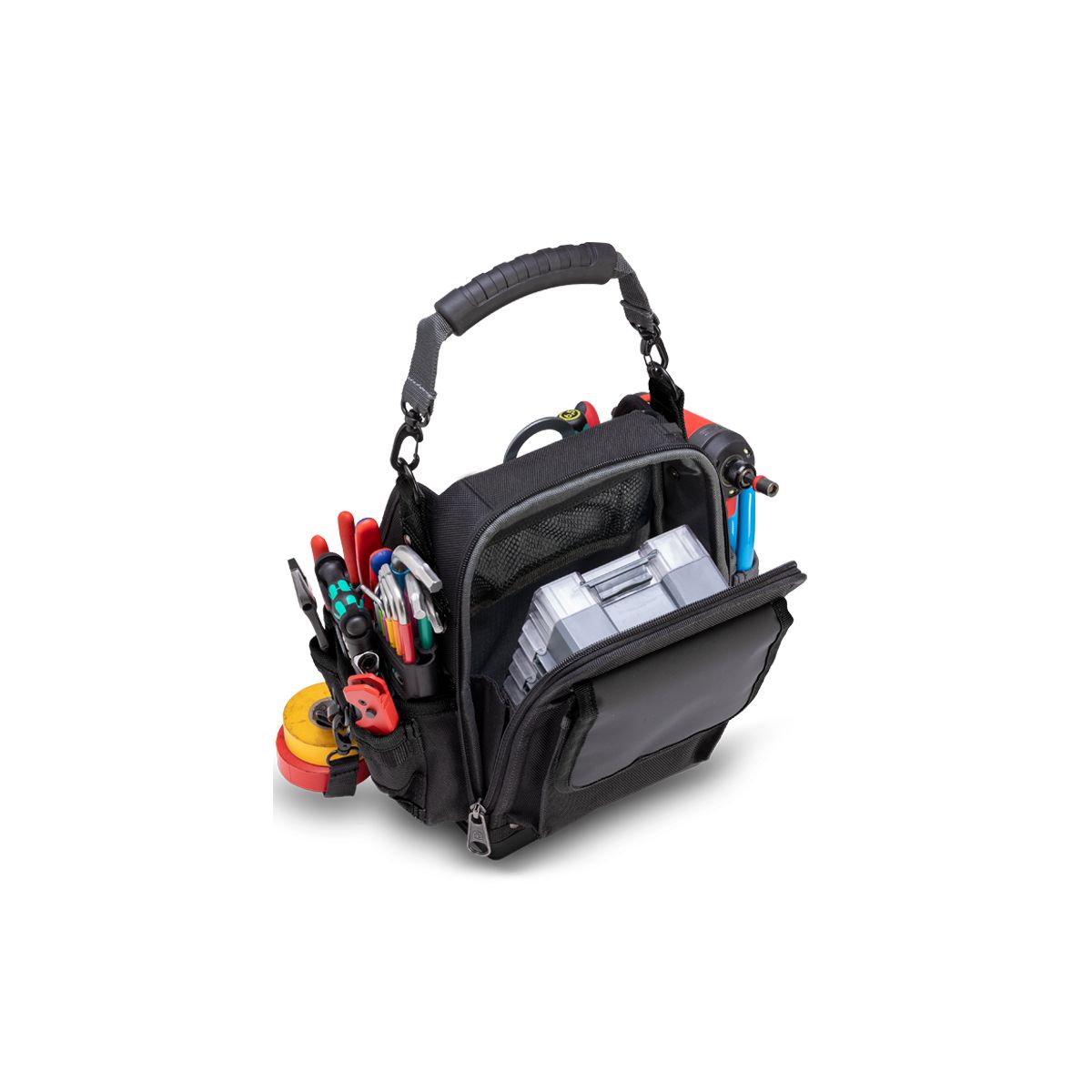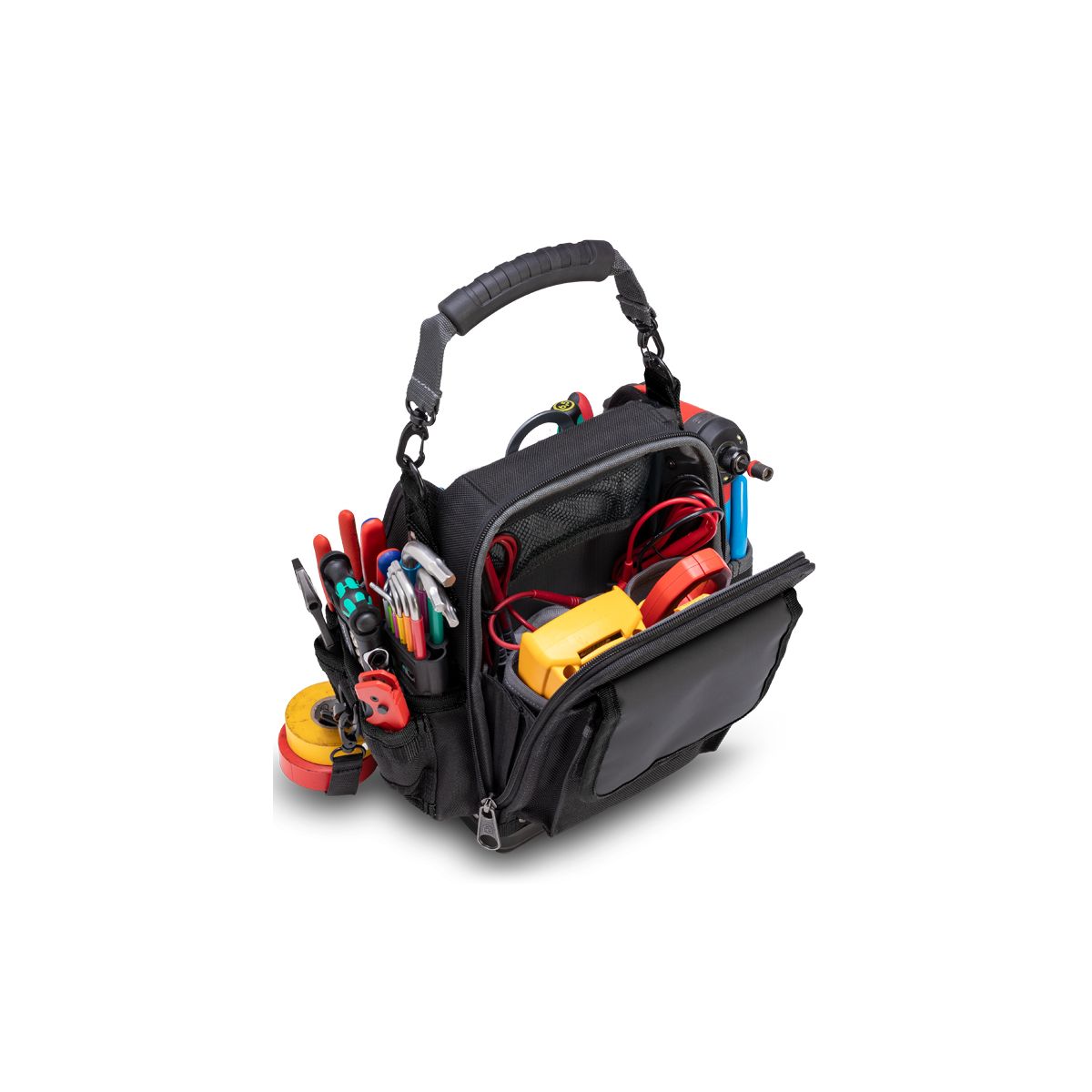 - Ce sac à outils est idéal pour les professionnels qui recherchent un rangement ouvert pour leurs outils à main tout en protégeant leurs appareils de test sensibles lorsqu'ils ne sont pas utilisés
