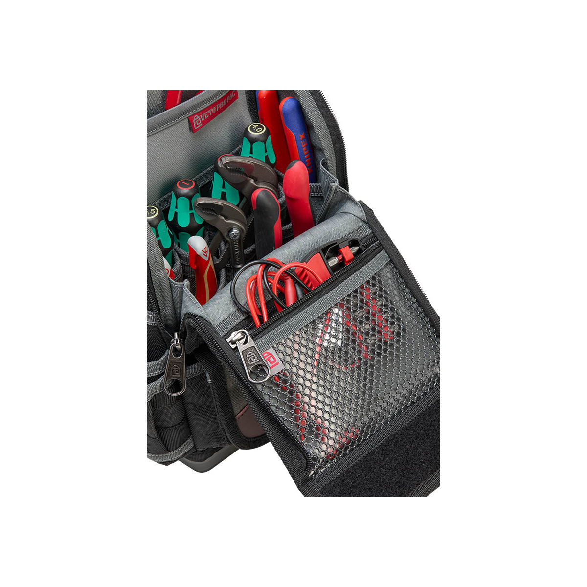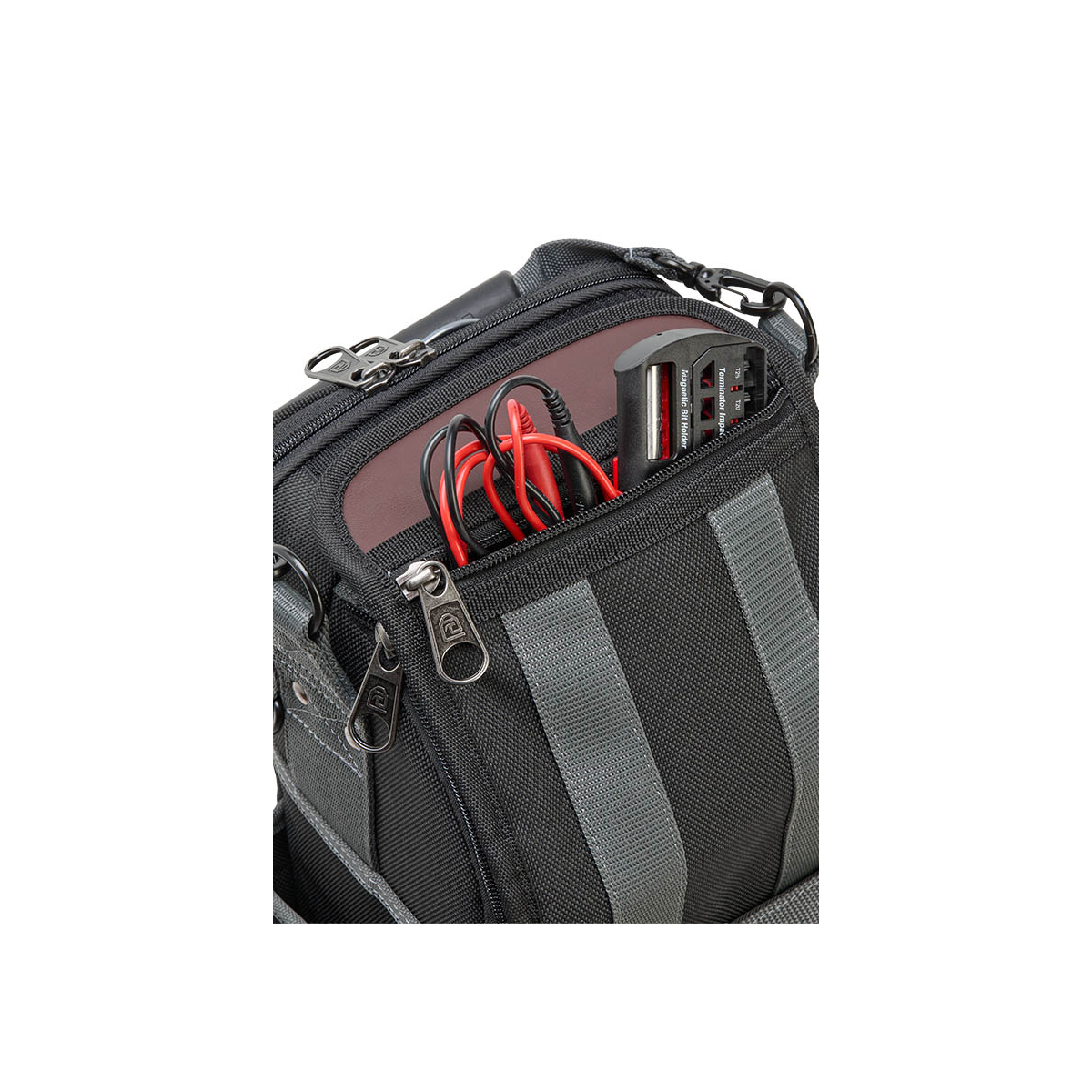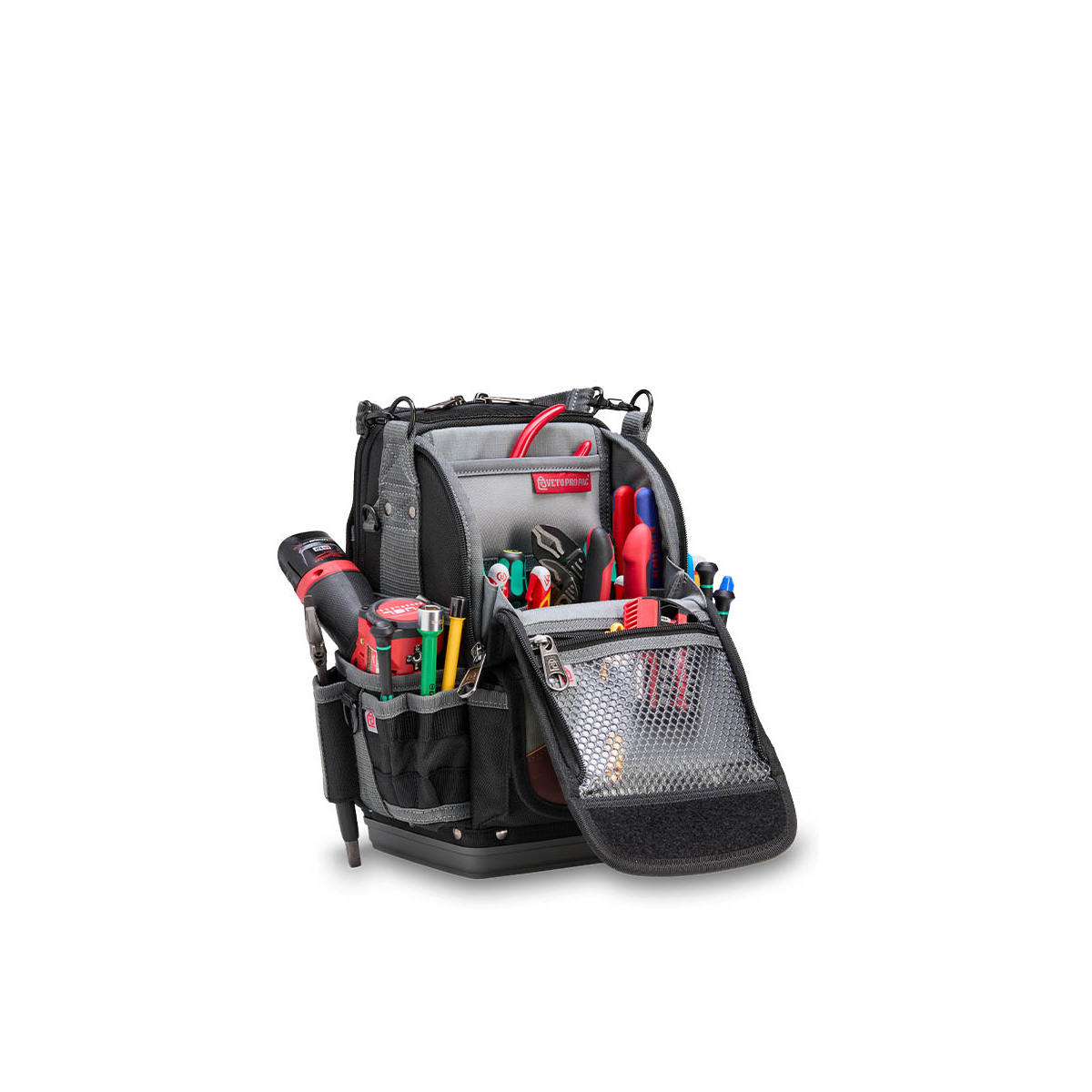 - Ce sac comprend également un compartiment arrière fermé et protégé pour les appareils de mesure sensibles. Il est équipé d'une bandoulière et de notre système de panneaux V-SWAP™, et inclut le panneau arrière pour multimètre présenté ci-dessous. Des panneaux supplémentaires sont vendus séparément.