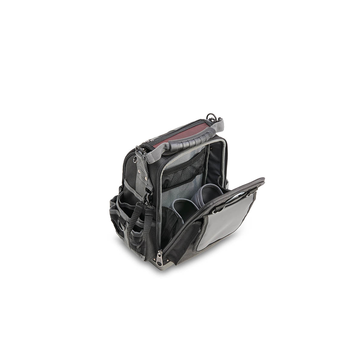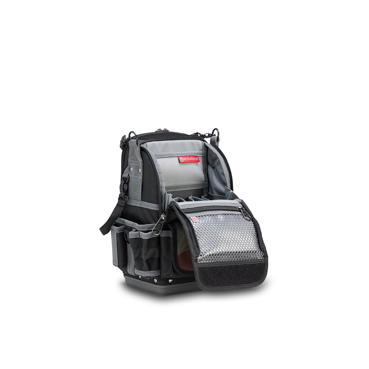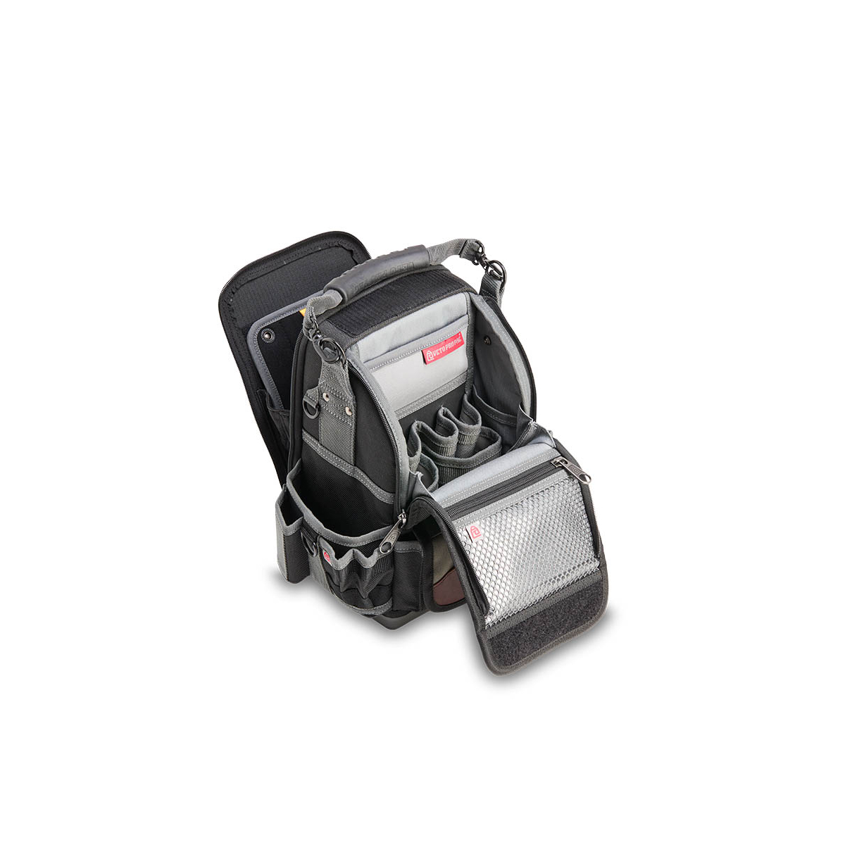 - Ce sac comprend également un compartiment arrière fermé et protégé pour les appareils de mesure sensibles. Il est équipé d'une bandoulière et de notre système de panneaux V-SWAP™, et inclut le panneau arrière pour multimètre présenté ci-dessous. Des panneaux supplémentaires sont vendus séparément.