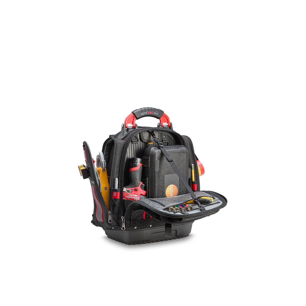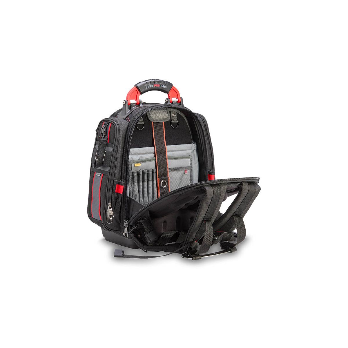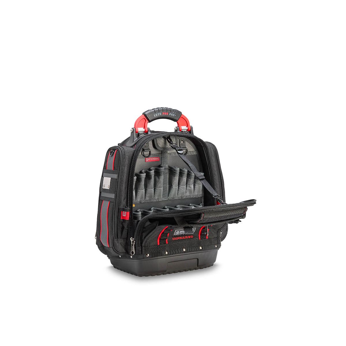 - Le TECH PAC P INFRARED intègre le système exclusif V-SWAP™ de panneaux interchangeables de Veto Pro Pac, incluant le panneau porte-outils et le panneau porte-multimètre.
