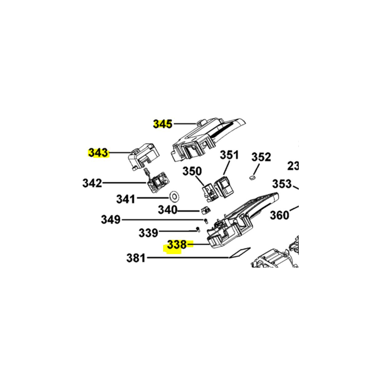- Dewalt N600857 Sous ensemble poignée pour scie D27113 type 1, type 2 et type 3. Comprend les repères 338, 343 et 345