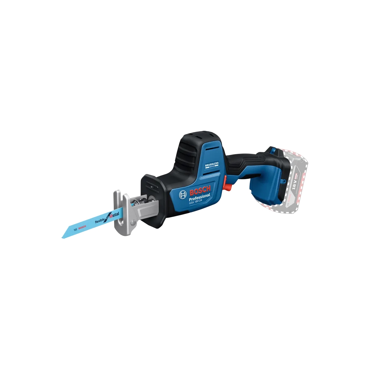 - La GSA 18V-24 Professional est dotée d’un puissant moteur sans charbon, d’un variateur de vitesse, d’un porte-lame SDS sans outil, d’une plaque d’appui pivotante et d’une LED d’éclairage.