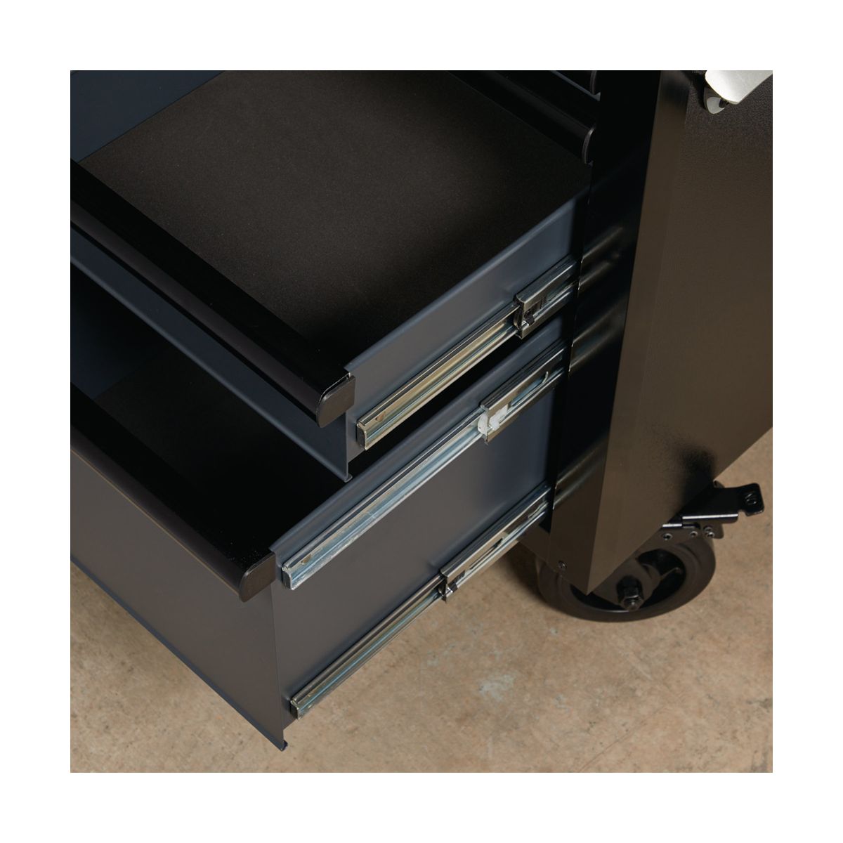 - Ce coffre à outils à roulettes est doté de 15 tiroirs spacieux avec fermeture amortie pour un fonctionnement silencieux et une protection optimale des outils. Les tiroirs arborent une élégante finition en aluminium anodisé, et le coffre lui-même présente une texture résistante aux rayures et à l'usure quotidienne. Chaque tiroir est également doublé de mousse pour protéger les outils et faciliter leur rangement.