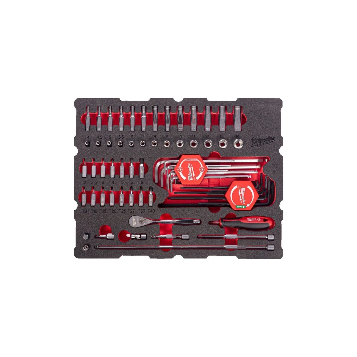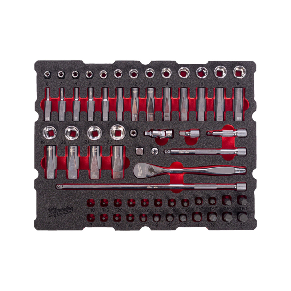 - 1x Milwaukee 4932501868 insert en mousse PACKOUT 3/8” cliquet et jeu de douilles 67 pièces